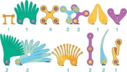 Открийте игриво конструиране, вдъхновено от оригами: гъвкави елементи от висококачествен синтетичен картон се свързват с помощта на мощни магнити и позволяват изграждане на 2D и 3D конструкции. Специално проектирани крила, пера и човки придават на всеки модел реалистично движение и атмосфера на тропическа джунгла.