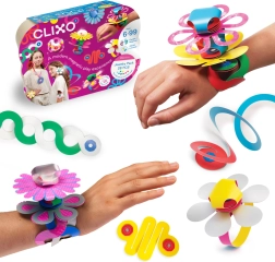 CLIXO Jewelry е блестящ тематичен комплект, вдъхновен от оригами, който с помощта на силни магнити свързва различни форми в оригинални бижута и аксесоари. Дългите лентови елементи и специално проектираните флорални части позволяват създаване на спирали, висулки и ефектни украшения за коса. Елементите са водоустойчиви, леки и безопасни – без BPA и фталати.
