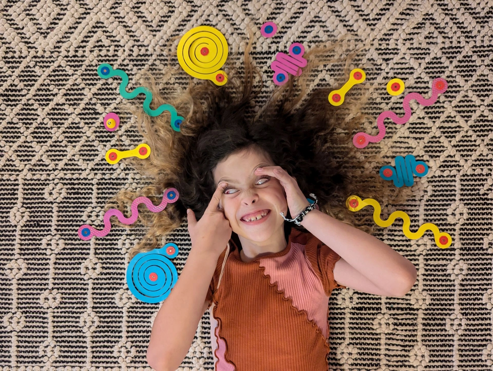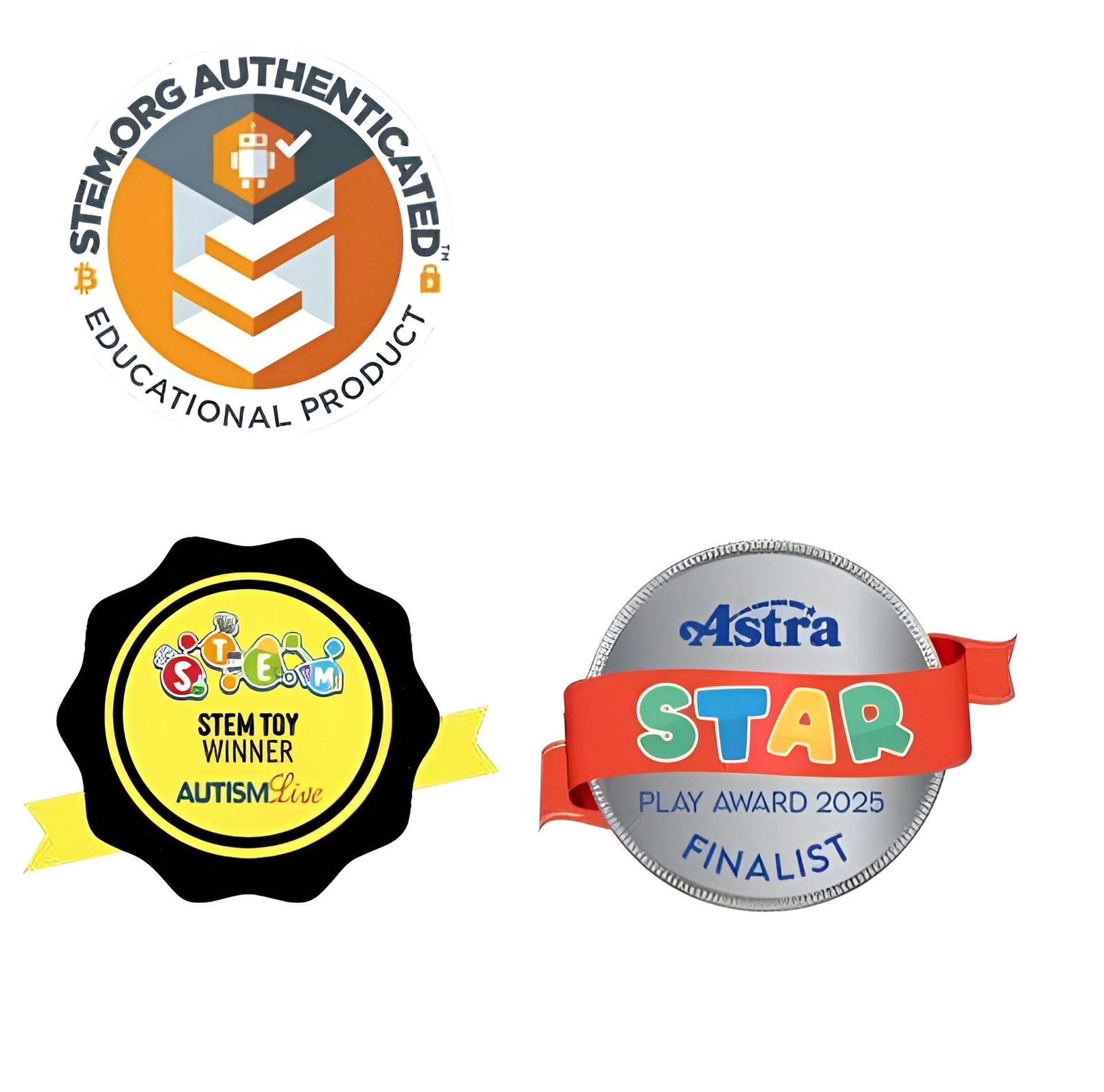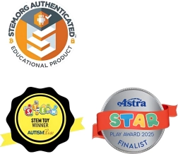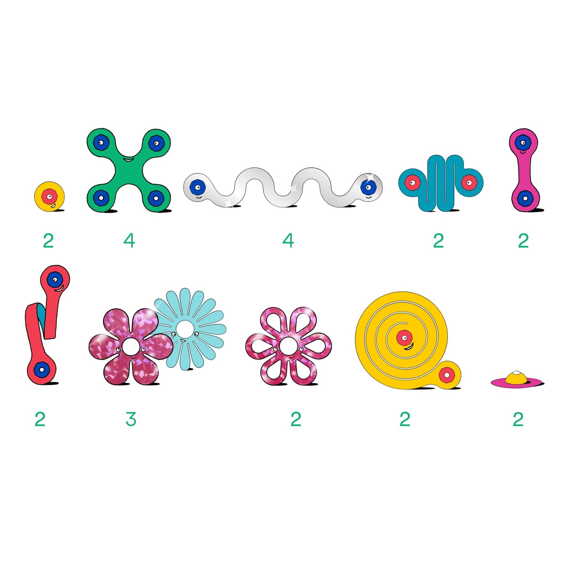 Уникалната въртяща система с фиксация в 24 позиции придава стабилност и развива пространственото възприятие, фината моторика и креативното мислене. Комплектът е идеален за STEAM активности у дома и в училище, а също така служи като релаксиращ антистрес инструмент за деца и възрастни.