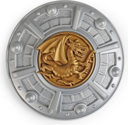 Детайлният щит и броня със златен драконов емблем добавят впечатляваща визия и подчертават рицарския характер.