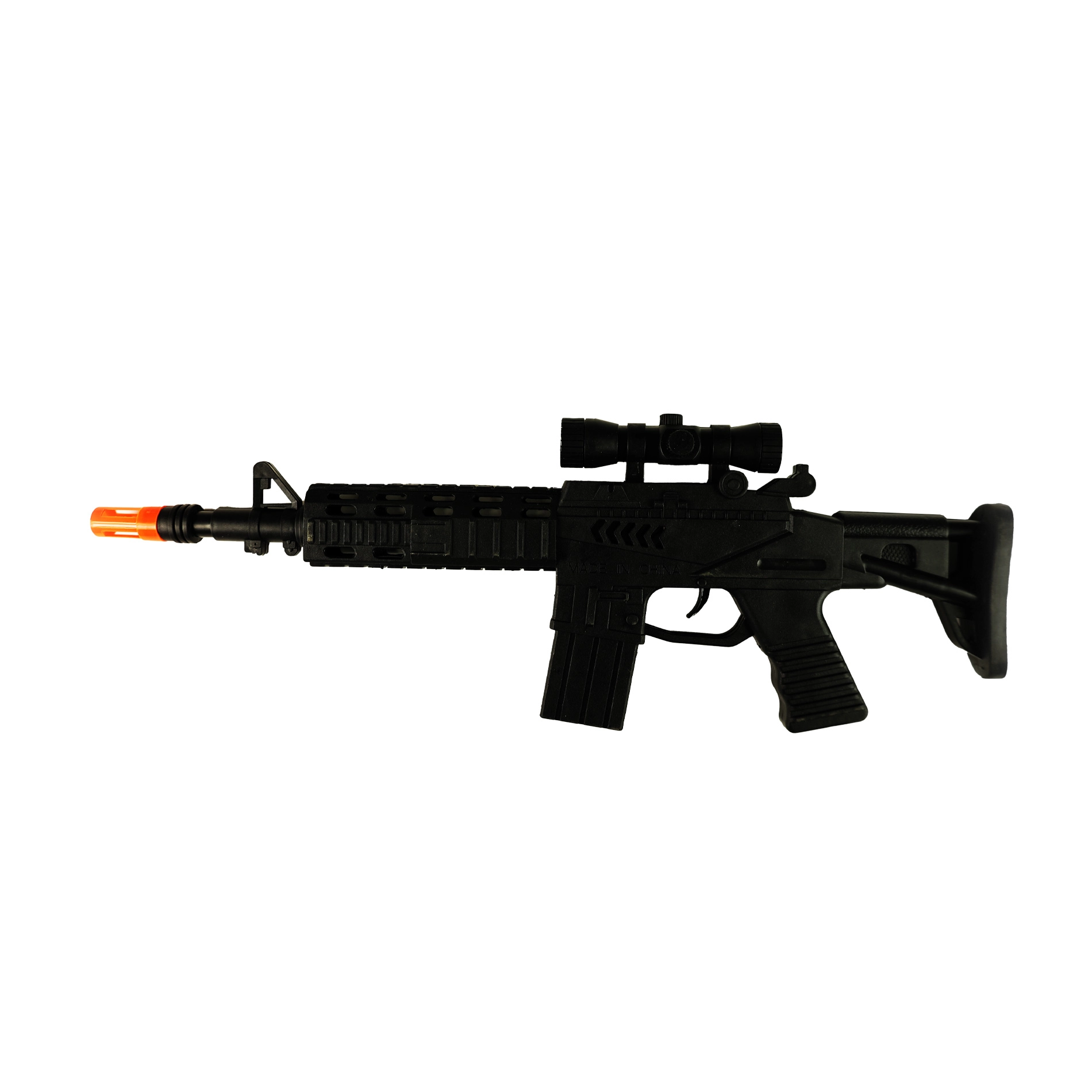 Детски механичен автомат с дължина 40 см ще зарадва всички малки фенове на екшън игрите. При натискане на спусъка издава реалистични звуци, а при „стрелба“ искри, което усилва автентичното изживяване от играта без необходимост от батерии.