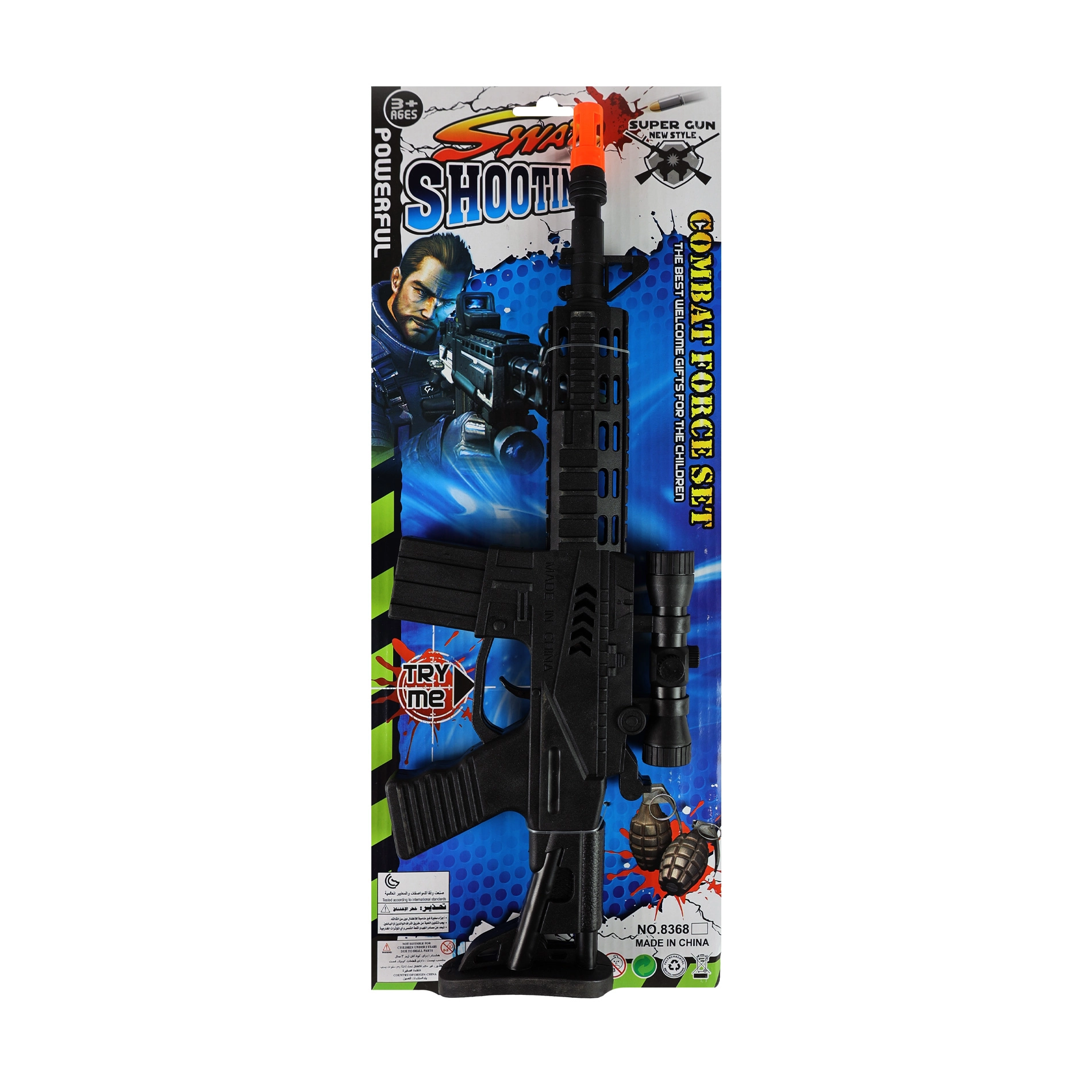 Играчката е подходяща за тематични игри на войници или полиция и е чудесен подарък за малките любители на екшън сцените. Препоръчваме използване в безопасна среда и отговорна игра.