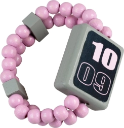 Розови дървени мъниста на ластик се нанизват лесно и стоят стабилно на детската ръка.