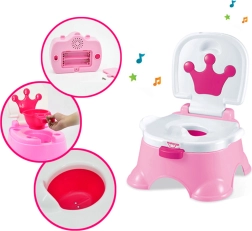 Практичното детско гърне 3в1 от марката WOOPIE ускорява и прави по-приятно приучаването към тоалетната. Предлага гърне, степенка и седалка в едно, има широка ергономична седалка, странични дръжки за стабилност и мелодии за мотивация на детето. Изработено е от качествена и безопасна пластмаса, лесно за почистване и благодарение на стабилната основа е безопасно за ежедневна употреба.