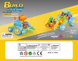 От един комплект сглобявате товарач, кола, багер, два вида трактори и кран. Гъвкавите елементи позволяват създаване на подвижни части.