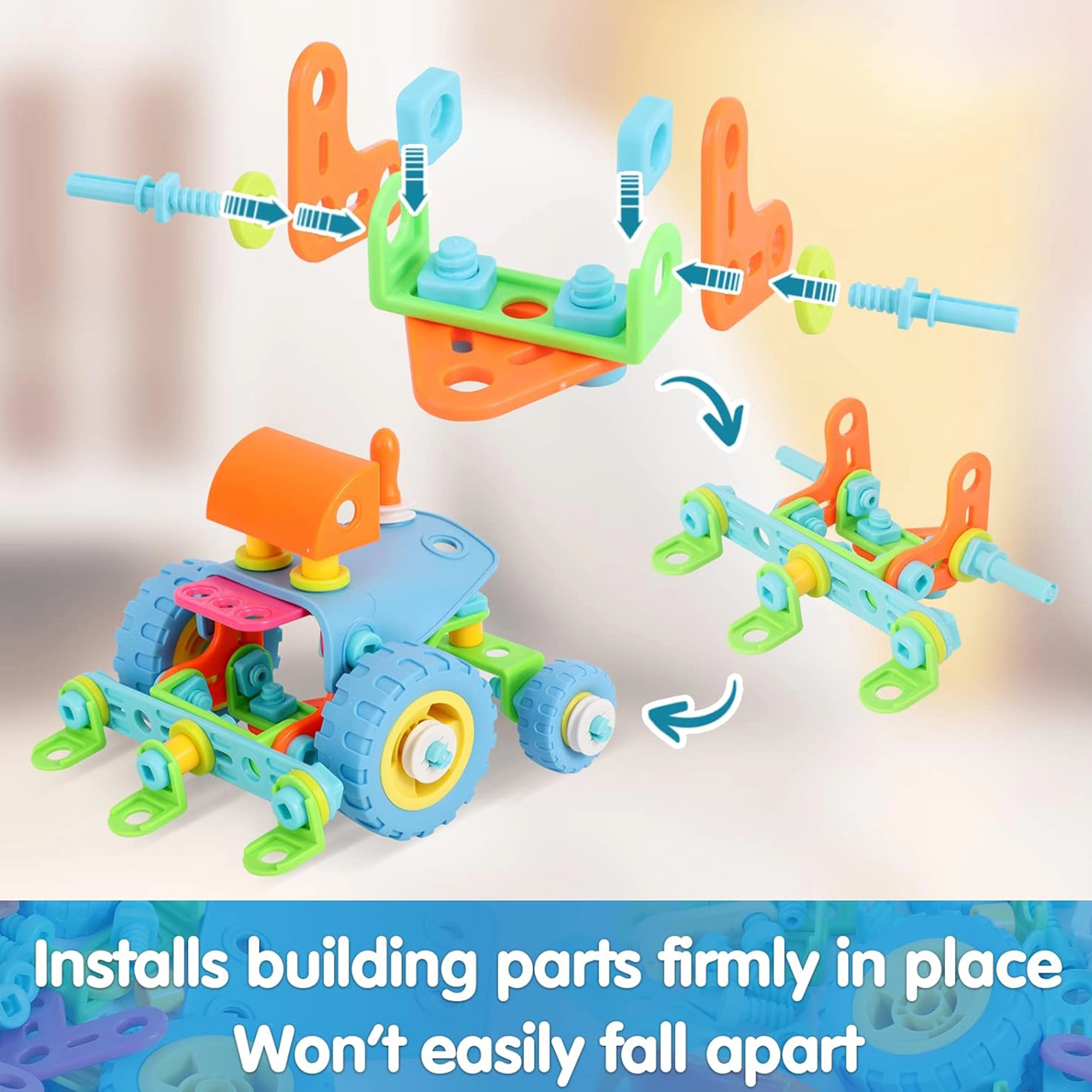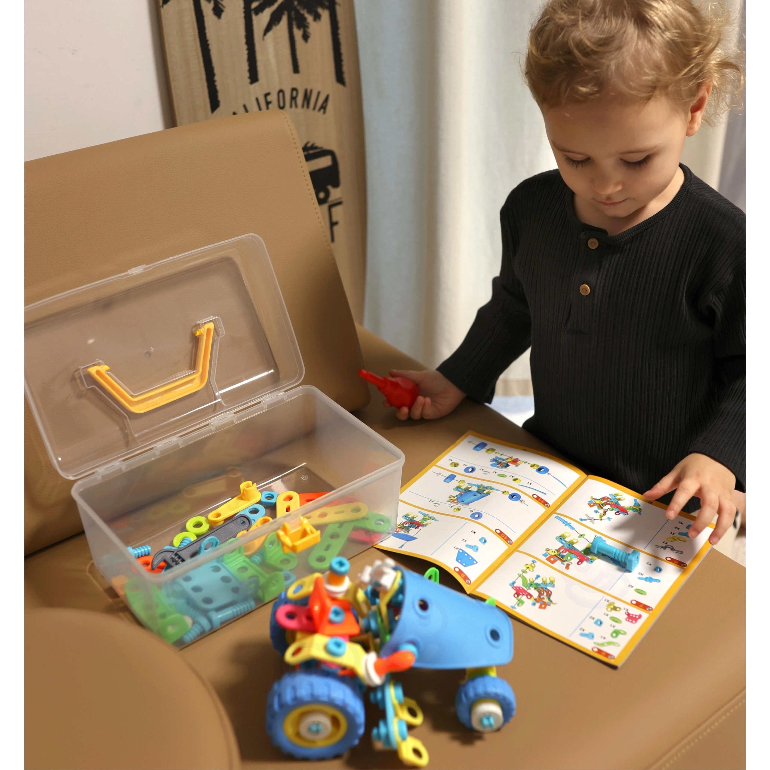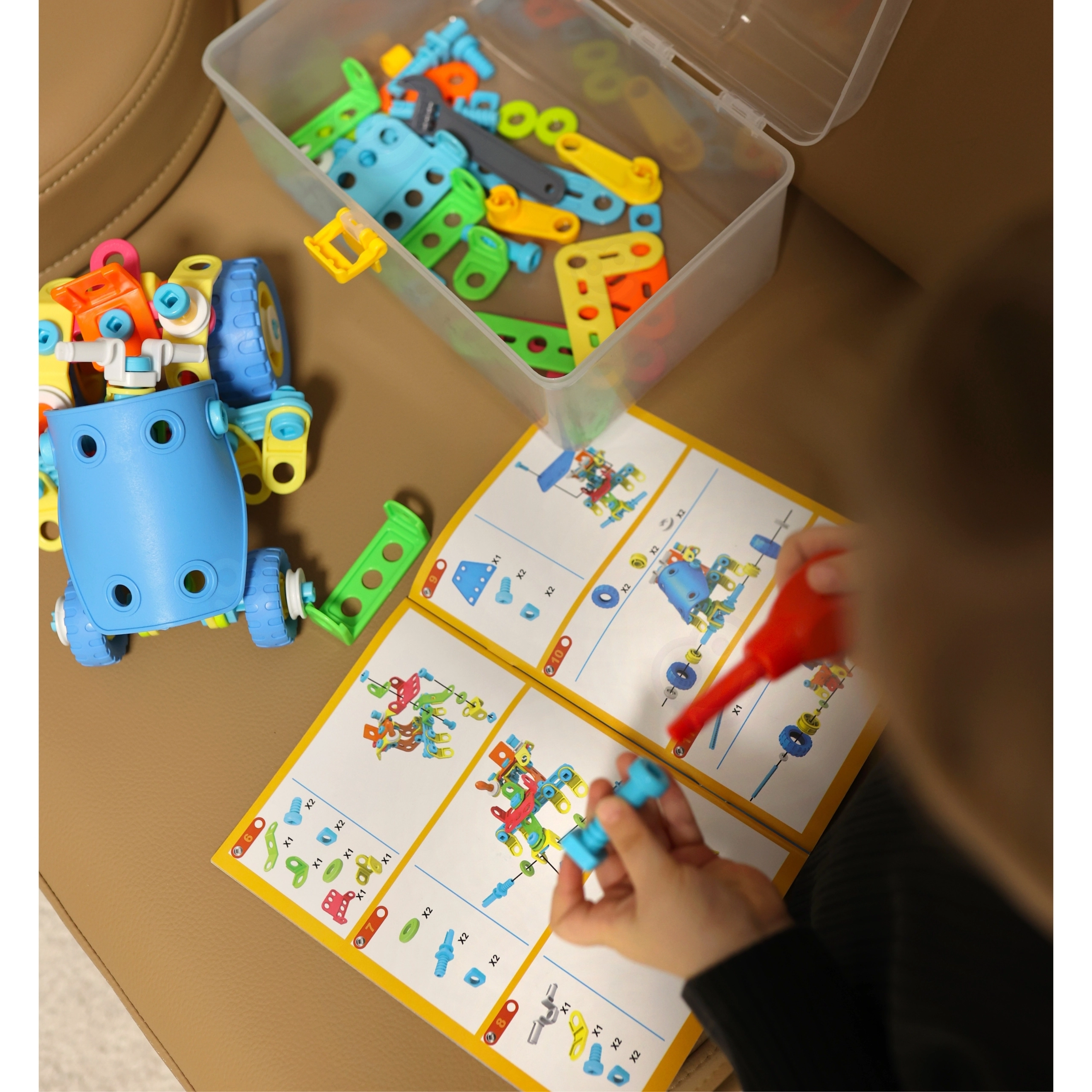Благодарение на принципите на STEM обучението децата изследват причинно-следствени връзки, планират стъпките на сглобяване и укрепват пространственото мислене. Когато липсва вдъхновение, помага илюстрираното ръководство с 6 модела. Качествените, за децата безопасни материали гарантират дълъг живот и сигурна игра.