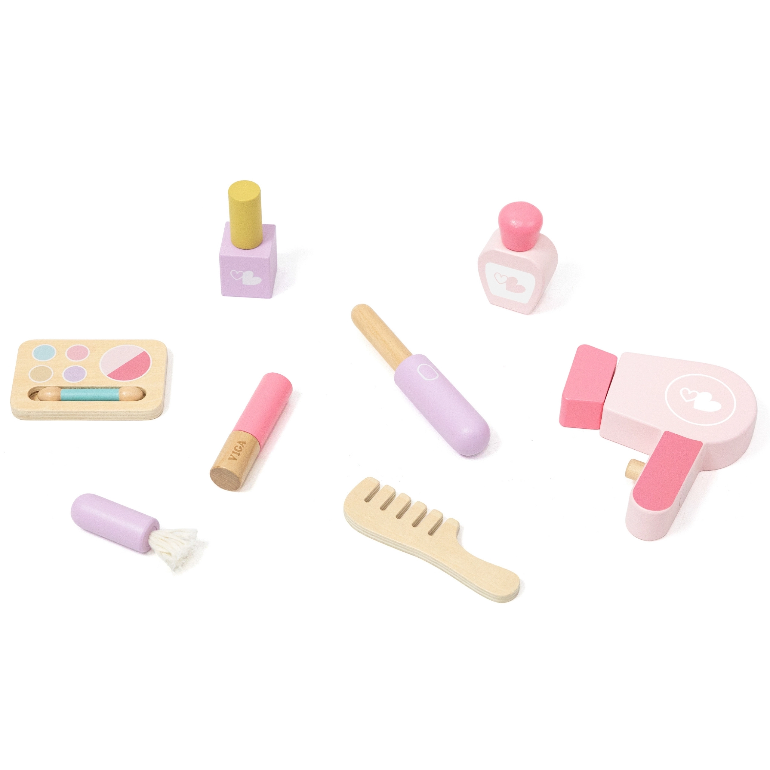 Палитра, червило, лакове, парфюм, гребен, четка и сешоар – всичко за забавни ролеви игри и развитие на креативността.