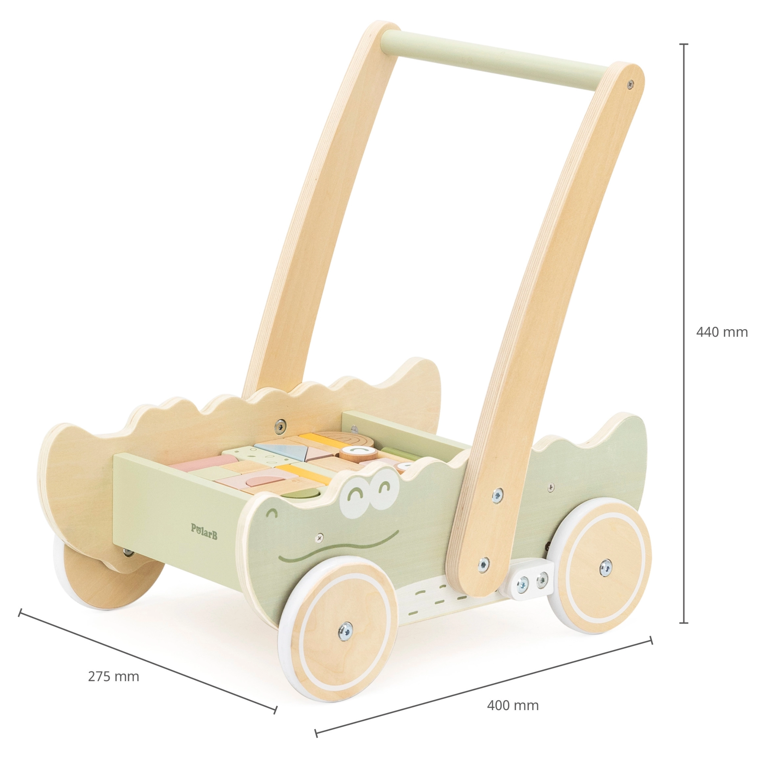 Изживейте радостта от първите стъпки с проходилото във форма на крокодил. Неговата стабилна дървена конструкция дава необходимата опора и позволява на децата безопасно да изследват света около себе си. Проходилото е оборудвано с ергономична ръкохватка, която помага на децата да запазят равновесие.