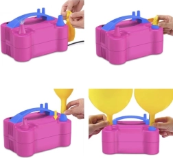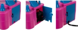 Оборудвана е с два накрайника за едновременно напомпване на два балона, което значително спестява време и усилия по време на подготовката. Практичното отделение за кабела и преносимият дизайн с дръжка правят помпата идеален помощник за всеки организатор на събития.