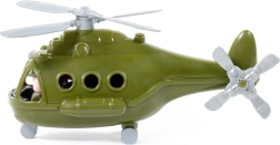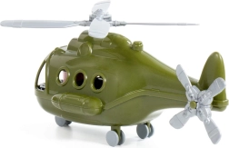 Този стилен детски хеликоптер във военно изпълнение предлага на децата реалистична игра с ротори, колелца и кабина на пилота. Благодарение на гладките ръбове и устойчивата пластмаса е безопасен и готов за ежедневни приключения. Идеален за развитие на въображението, фината моторика и игровите умения.