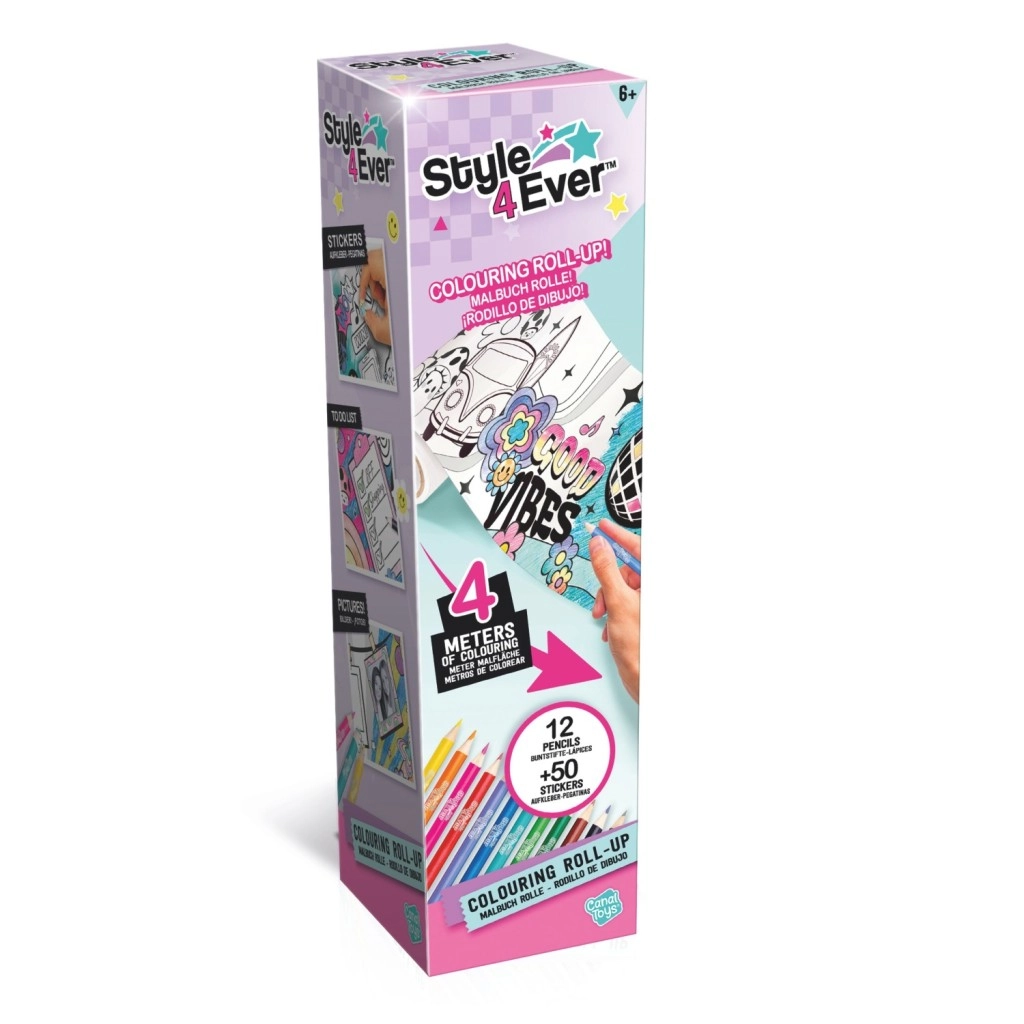 Нека децата да влязат в света на фантазията с комплекта Style4Ever оцветявки на ролка. Дългата 4-метрова ролка предлага множество мотиви за оцветяване, които могат лесно да се споделят и изрязват на по-малки части. Благодарение на богатото съдържание и интуитивното изпълнение малките творци ще се радват на часове креативно забавление.