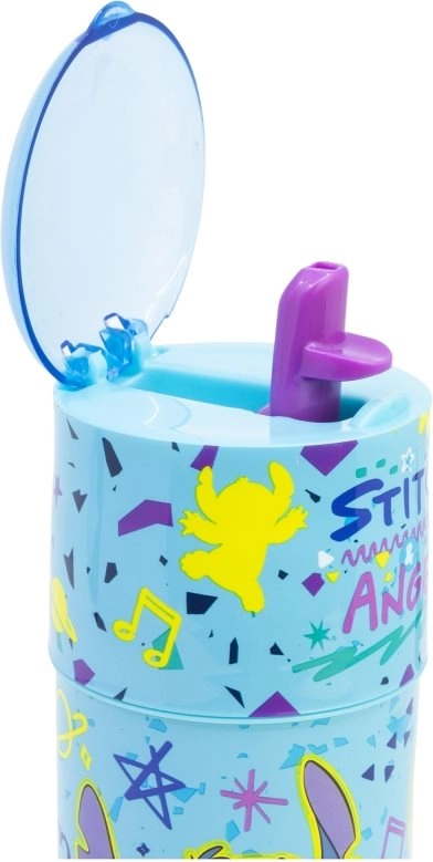 Детската бутилка за пиене Stitch е не само практична, но и стилна благодарение на мотива от популярния анимационен филм. Изработена е от прозрачен и много издръжлив материал Ecozen, което гарантира дълъг живот и безопасност при употреба. Благодарение на капачката против протичане и хигиеничната качулка бутилката е идеална за ежедневна употреба в училище, на екскурзии или по време на свободни дейности.