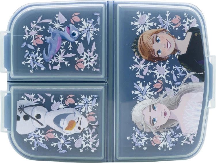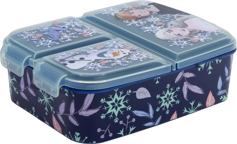 STOR Multi Box за закуска Замръзналото кралство е идеален избор за деца, които се нуждаят от практично и безопасно решение за съхранение на закуска. Тази кутия има три самостоятелни отделения, които позволяват различните храни да се съхраняват отделно.