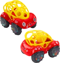 Дрънкалка-количка е идеалната сензорна играчка за вашето дете. Помага за развитието на фината моторика и сетивата благодарение на вградените дрънкалки в колелцата и въртящото се топче, което стимулира слуха и зрението на бебето.