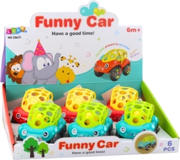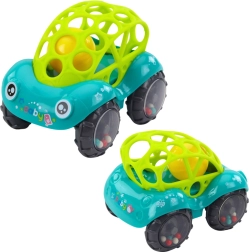Тази дрънкалка-количка е създадена с мисъл за най-малките, с мека, гъвкава горна част, идеална за периода на никнене на зъбки. Бебето може безопасно да я гризе, мачка и хваща благодарение на геометричните отвори. Компактните размери улесняват захващането и са идеални както за игра у дома, така и по време на път.