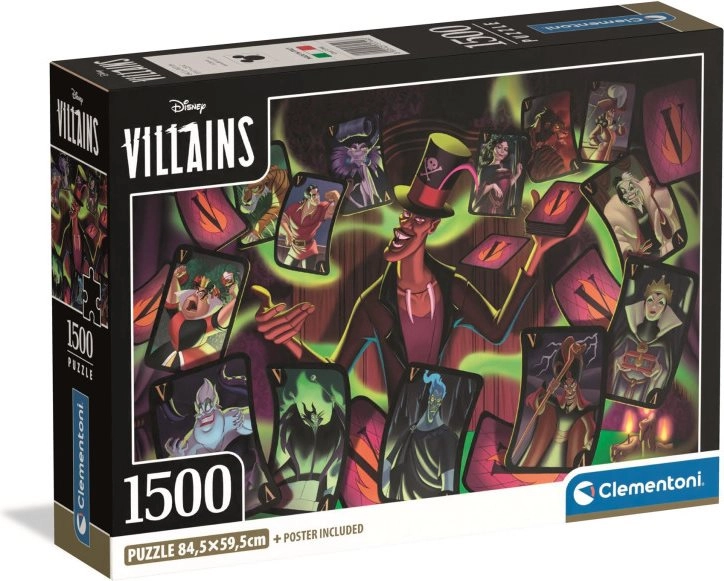 Открийте удоволствието и предизвикателството от подреждането с този качествен пъзел от марката Clementoni. Сглобеното изображение е с размери 84,5 x 59,5 cm, а прецизният печат и ярките цветове гарантират, че ще се насладите на всеки детайл. Този конкретен мотив представя уникална колекция от най-обичаните Disney злодеи, което прави този пъзел неповторимо попълнение за всеки фен на анимационните филми.