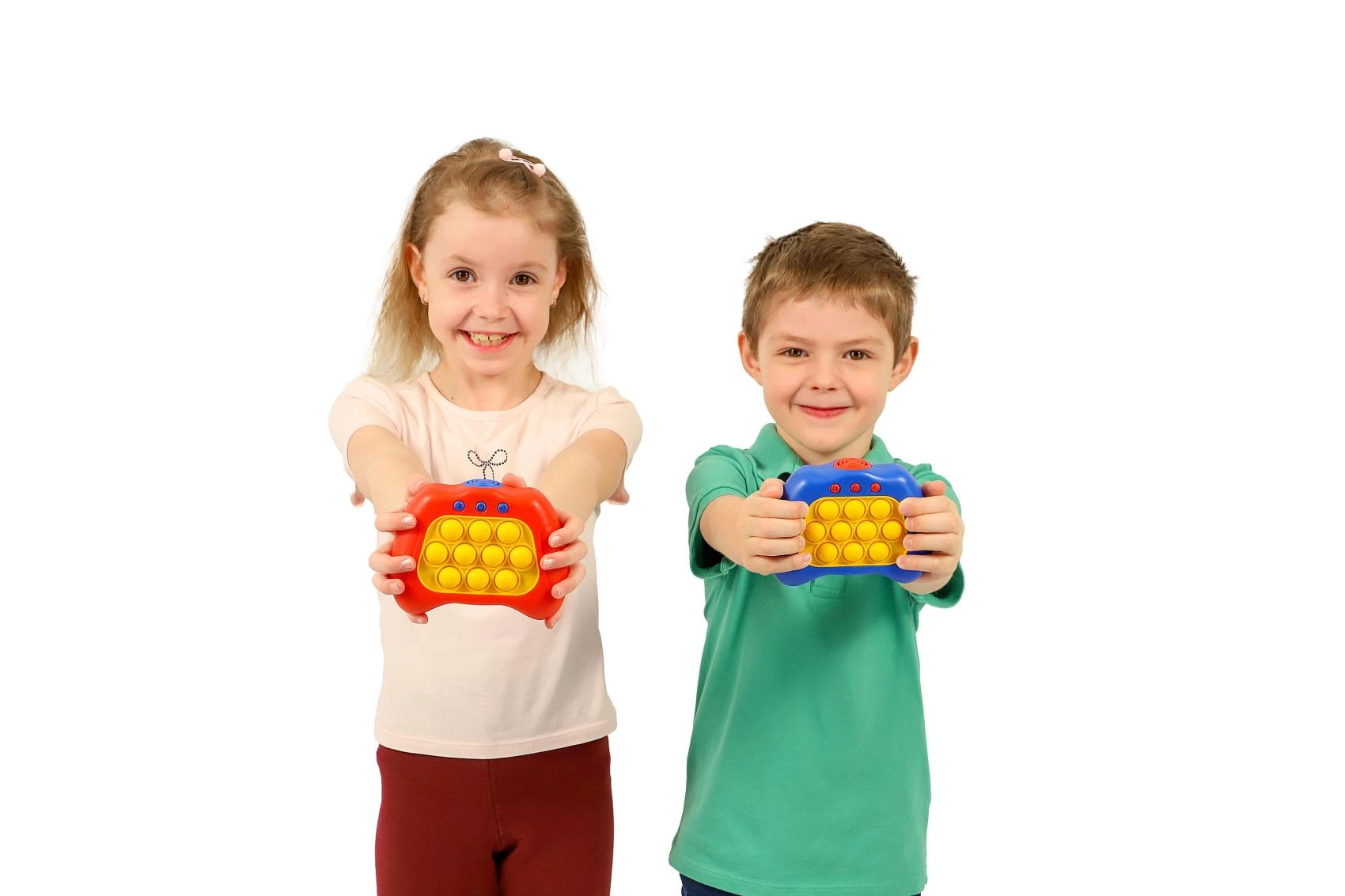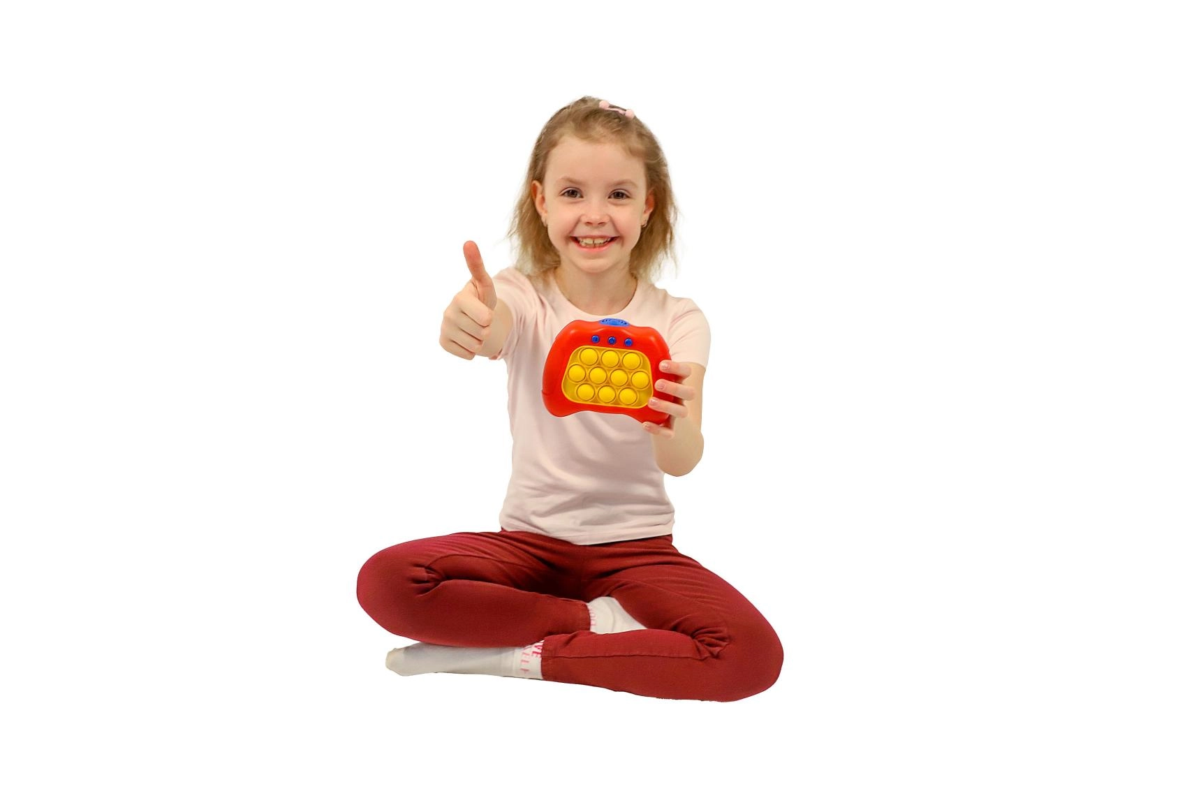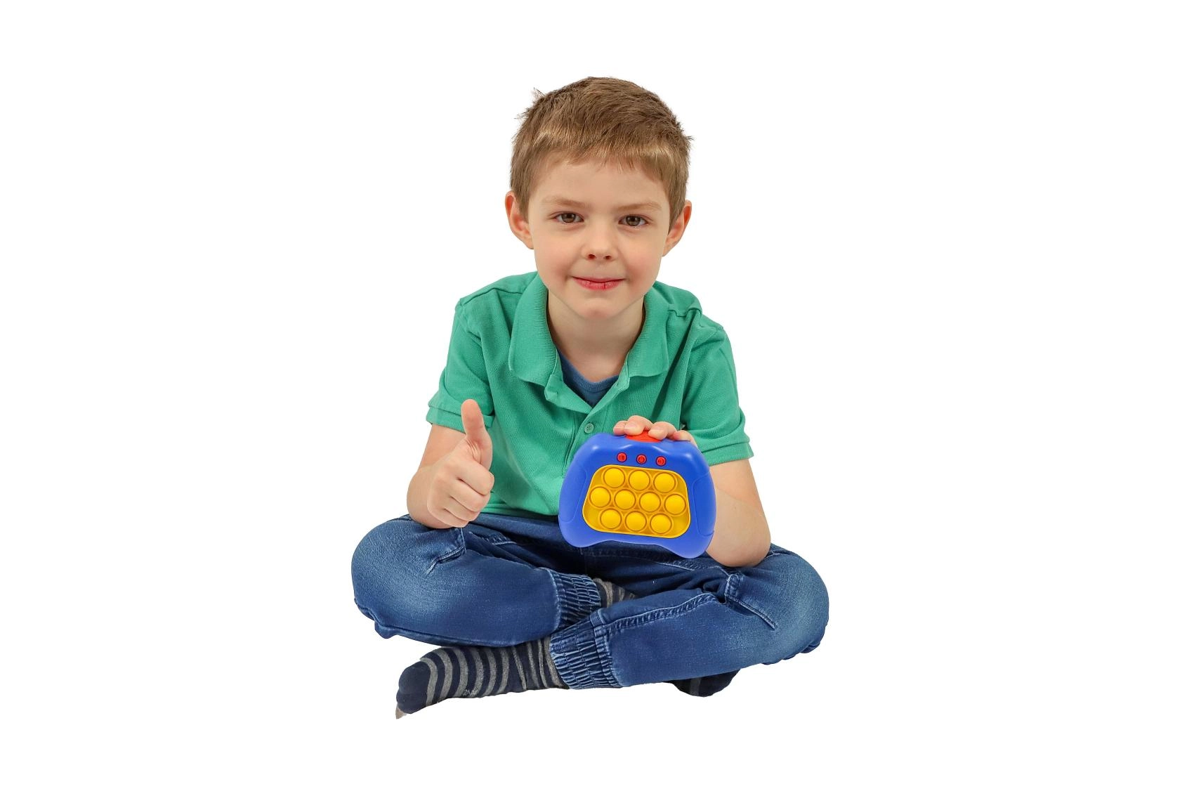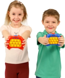Bubble Pops е умна комбинация от популярния pop-it фиджет и електронна игра със светлини и звуци. Децата се увличат мигновено – балончетата с приятна тактилна обратна връзка и светлинните сигнали подпомагат фината моторика, концентрацията и координацията око–ръка. Благодарение на многото нива и режими играта е забавна както за начинаещи, така и за малки шампиони по реакционни игри.
