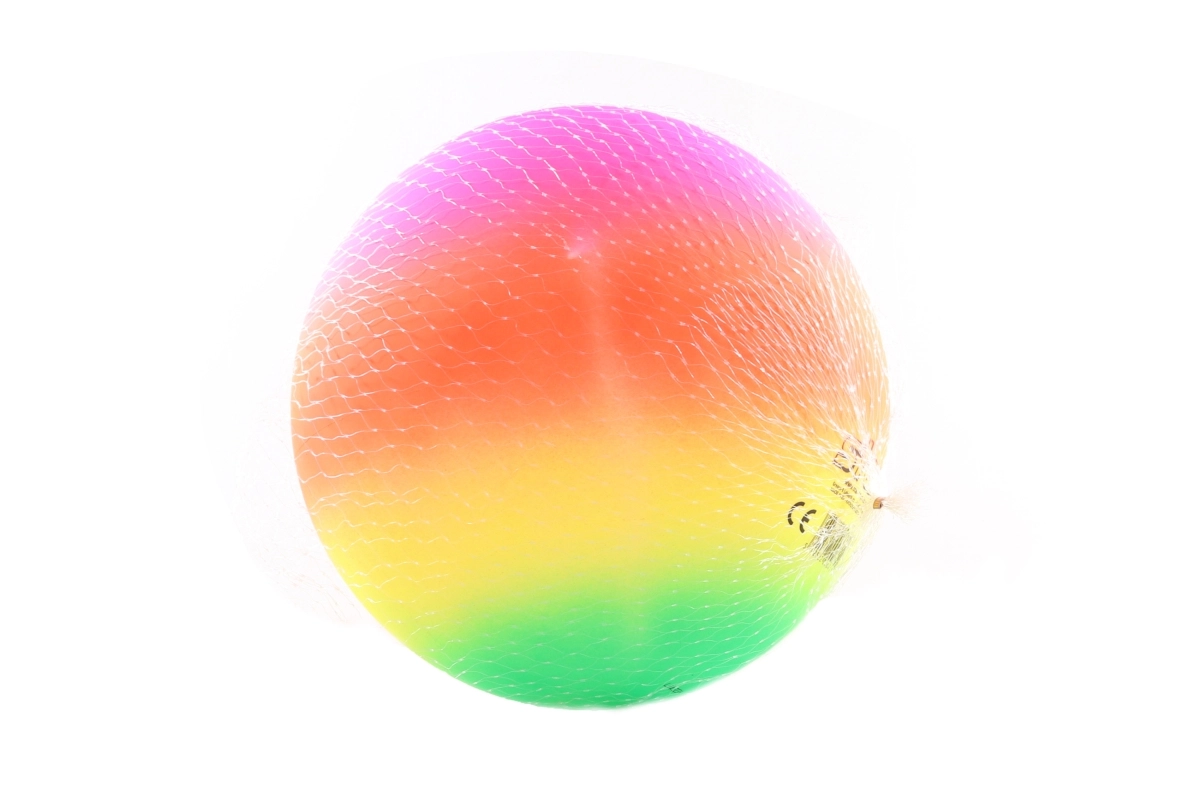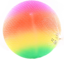 Насладете се на забавление с цветна топка в дъгови нюанси с диаметър 23 см. Тя е лека, лесна за хващане и идеална за игри в двора и на плажа. Подходяща за деца от 3 години, опакована в мрежа и доставя се спусната за лесен транспорт.
