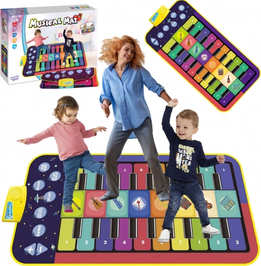 Интерактивната музикална постелка – пиано от марката WOOPIE носи забава за цялото семейство. Децата могат да танцуват, свирят и пеят, да развиват координация и музикален усет. Постелката е мека, с неплъзгаща се долна страна, има 10 пиано клавиша и икони на 8 инструмента, няколко режима на възпроизвеждане, запис и обратно възпроизвеждане и след 3 минути неактивност превключва в икономичен режим.