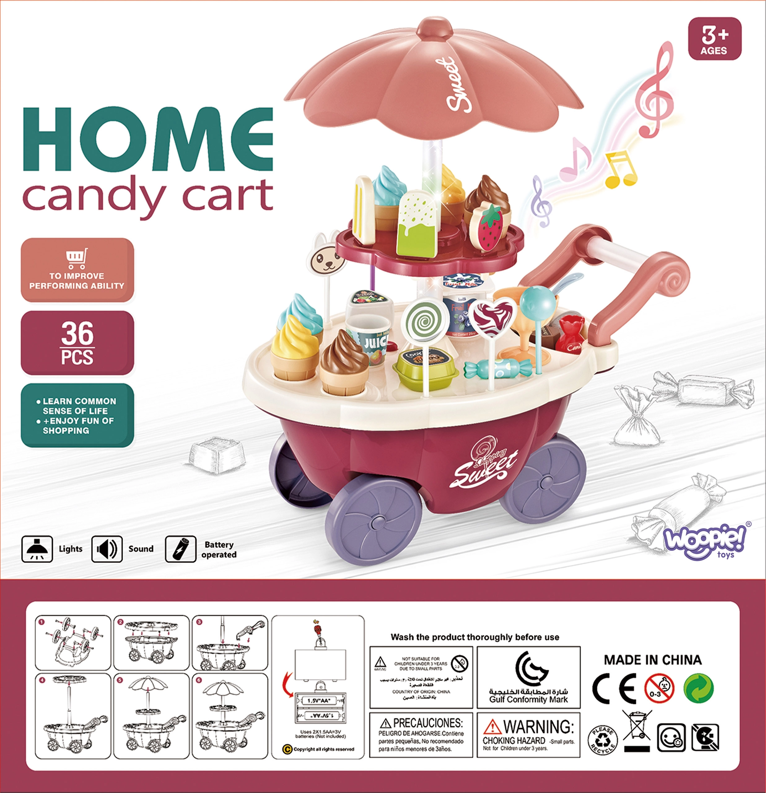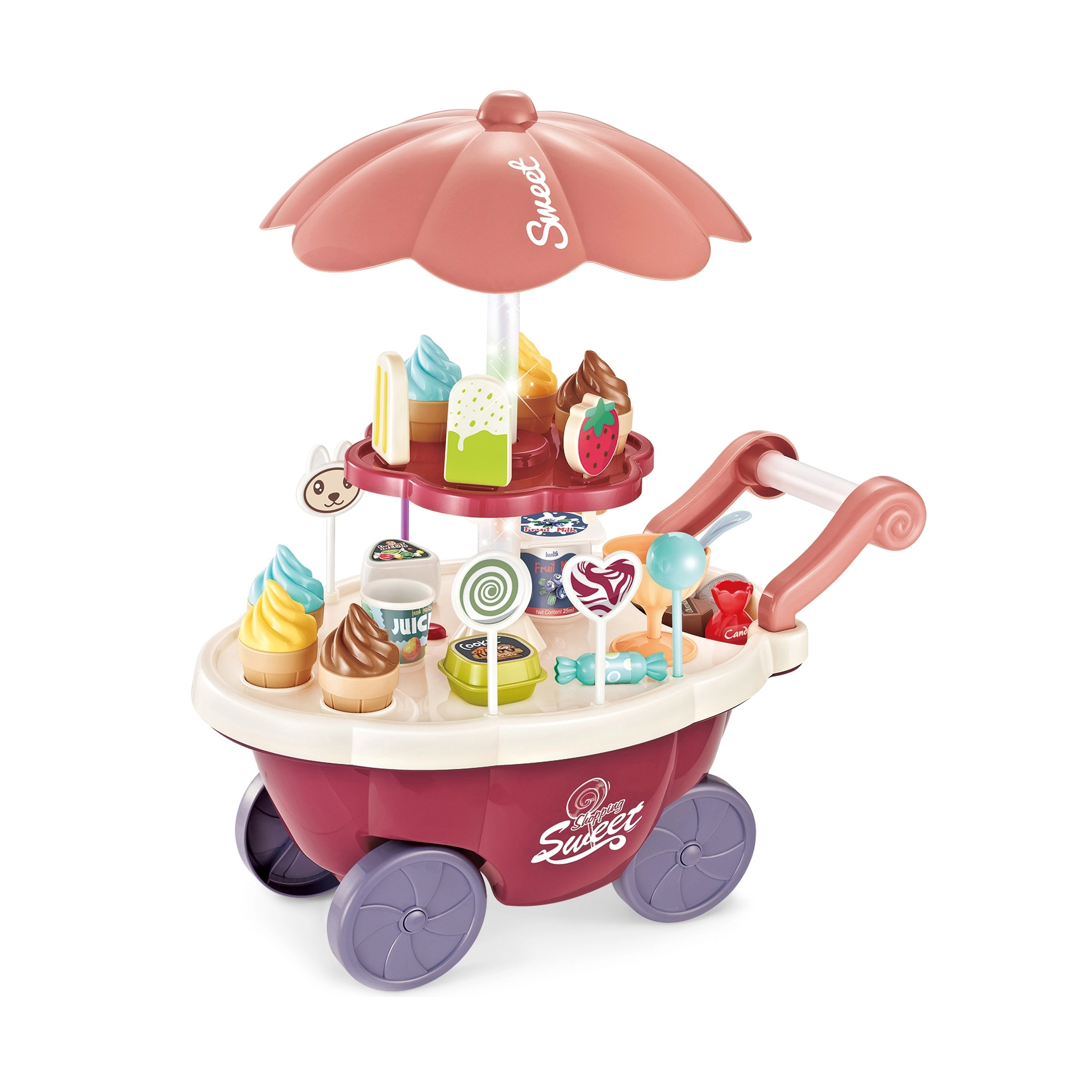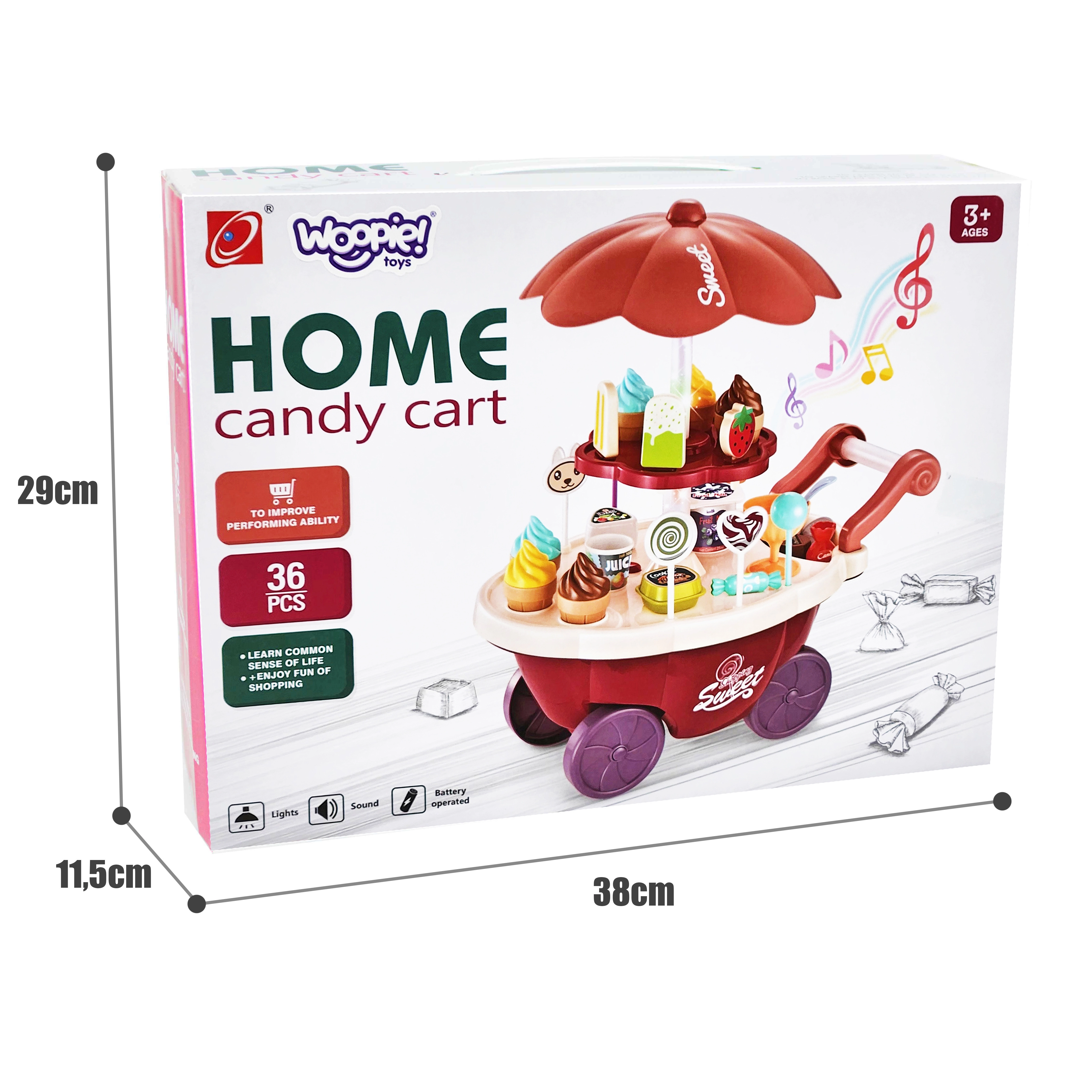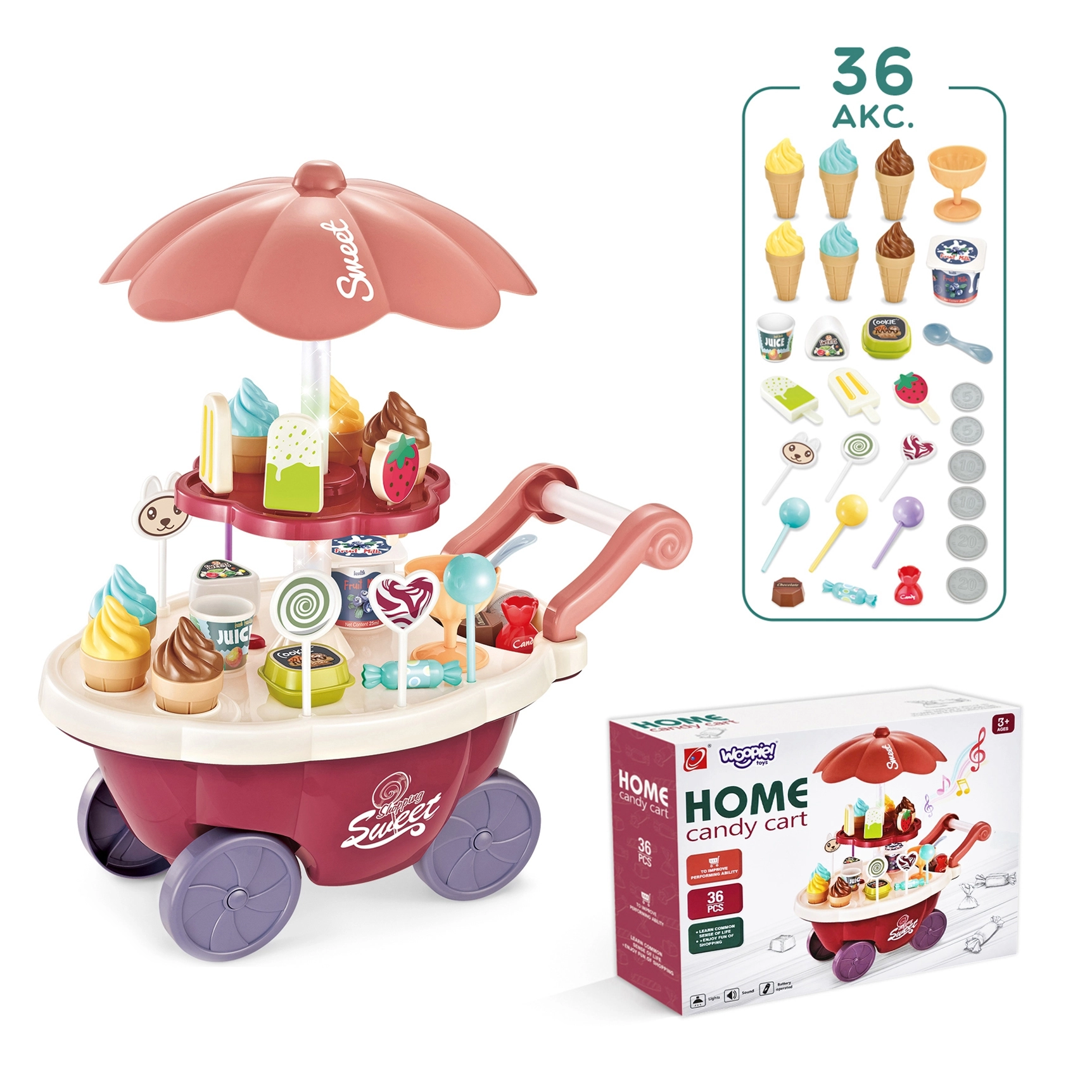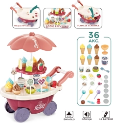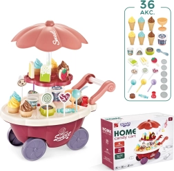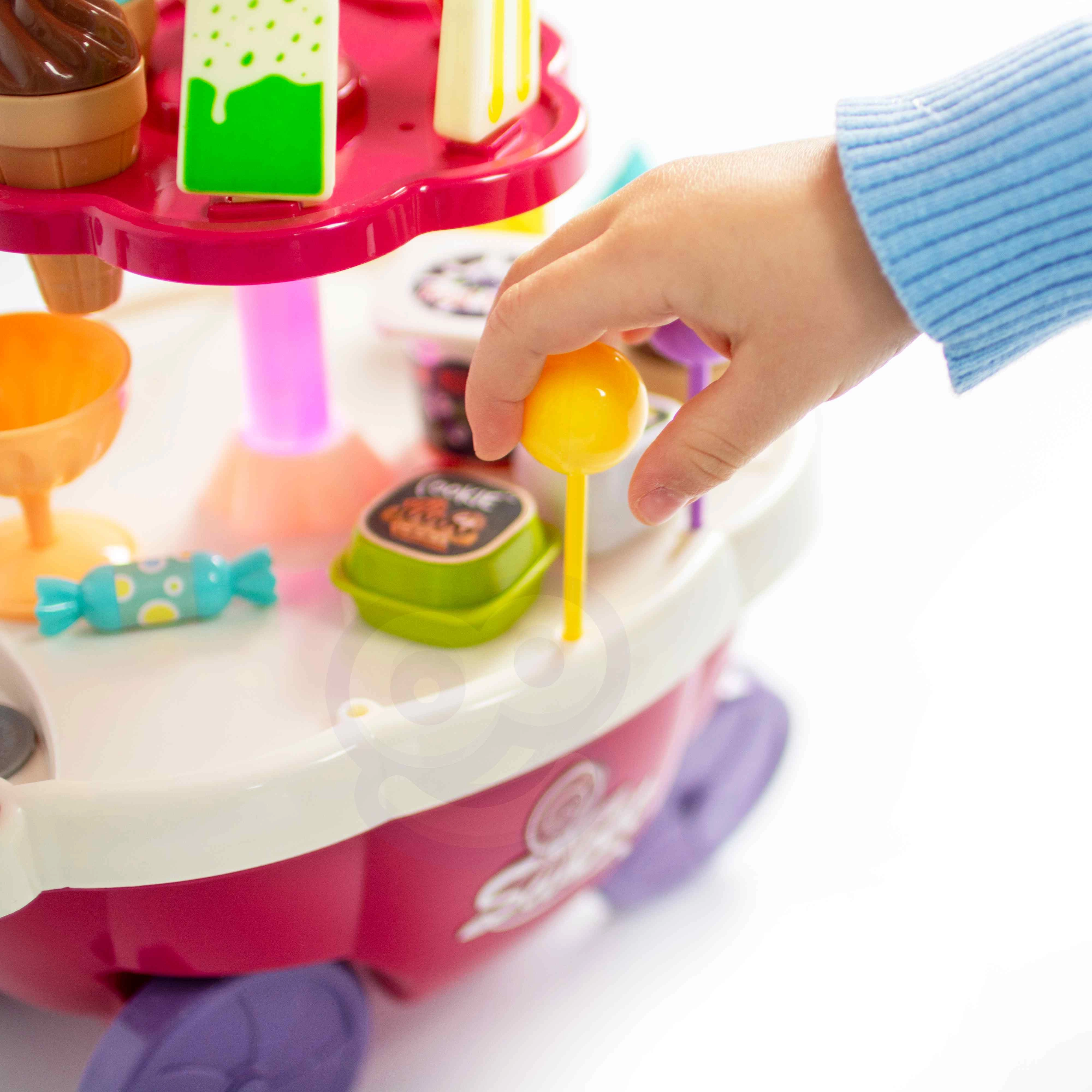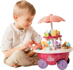 Тази играчка симулира ролята на продавач и купувач, което помага за развитие на социалните умения и осъзнатостта. Количката съдържа много качествени аксесоари и стикери за игра и продажба на сладолед и сладки. Играчката позволява изучаване на основни математически и финансови умения чрез симулирани покупки с помощта на включените монети.