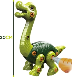 Динозавър Брахиозавър от известната марка WOOPIE ще ви върне във времена, когато по Земята са бродили тези впечатляващи същества. Играчката е създадена, за да развива мануални умения и креативността на вашето дете, като подкрепя неговата фина моторика. Комплектът съдържа 28 пластмасови елемента, които детето ще сглоби с помощта на функционална отвертка или електрически винтоверт с двупосочно въртене, позволяващ завинтване и развинтване.