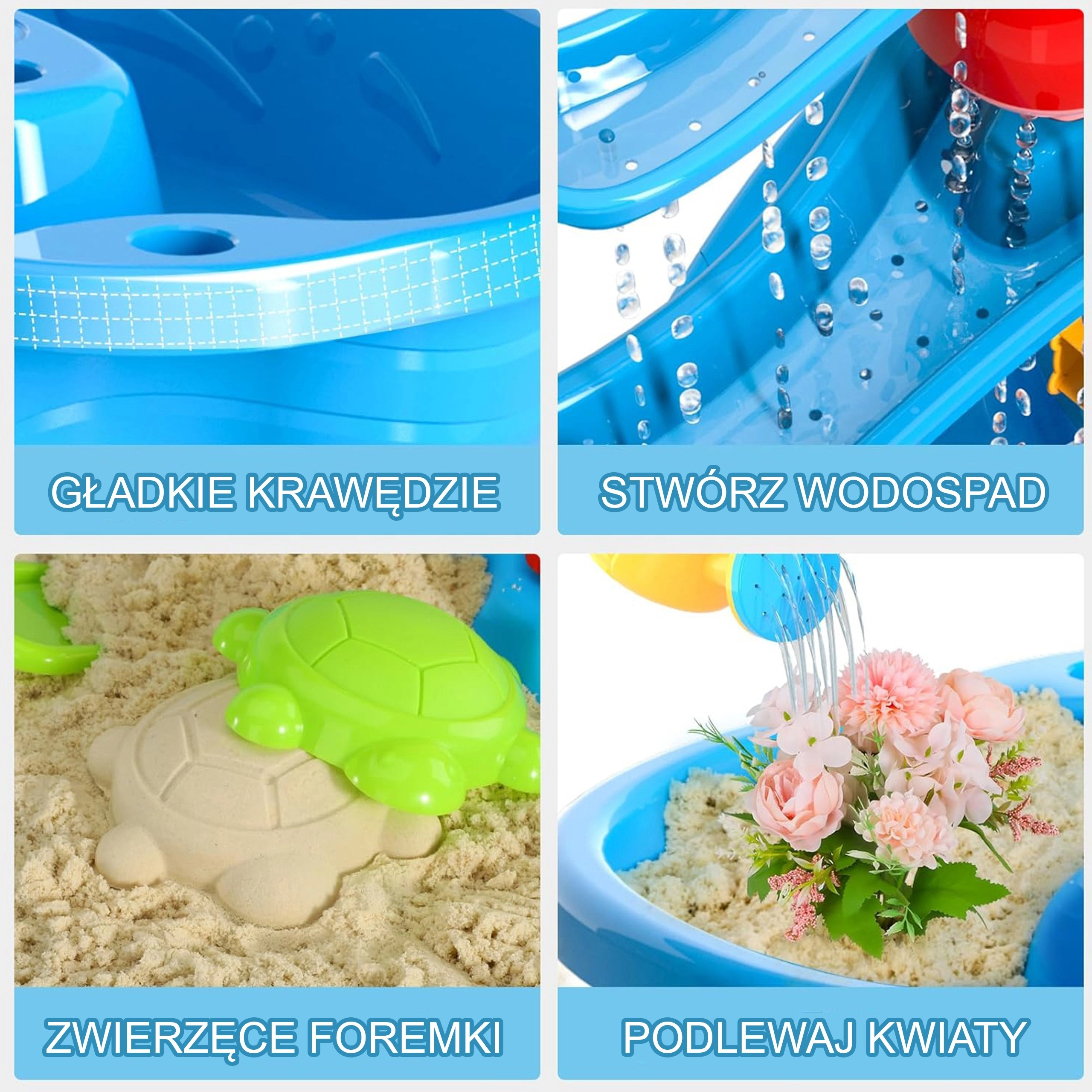 - Многофункционална употреба: вода, обикновен и кинетичен пясък.