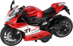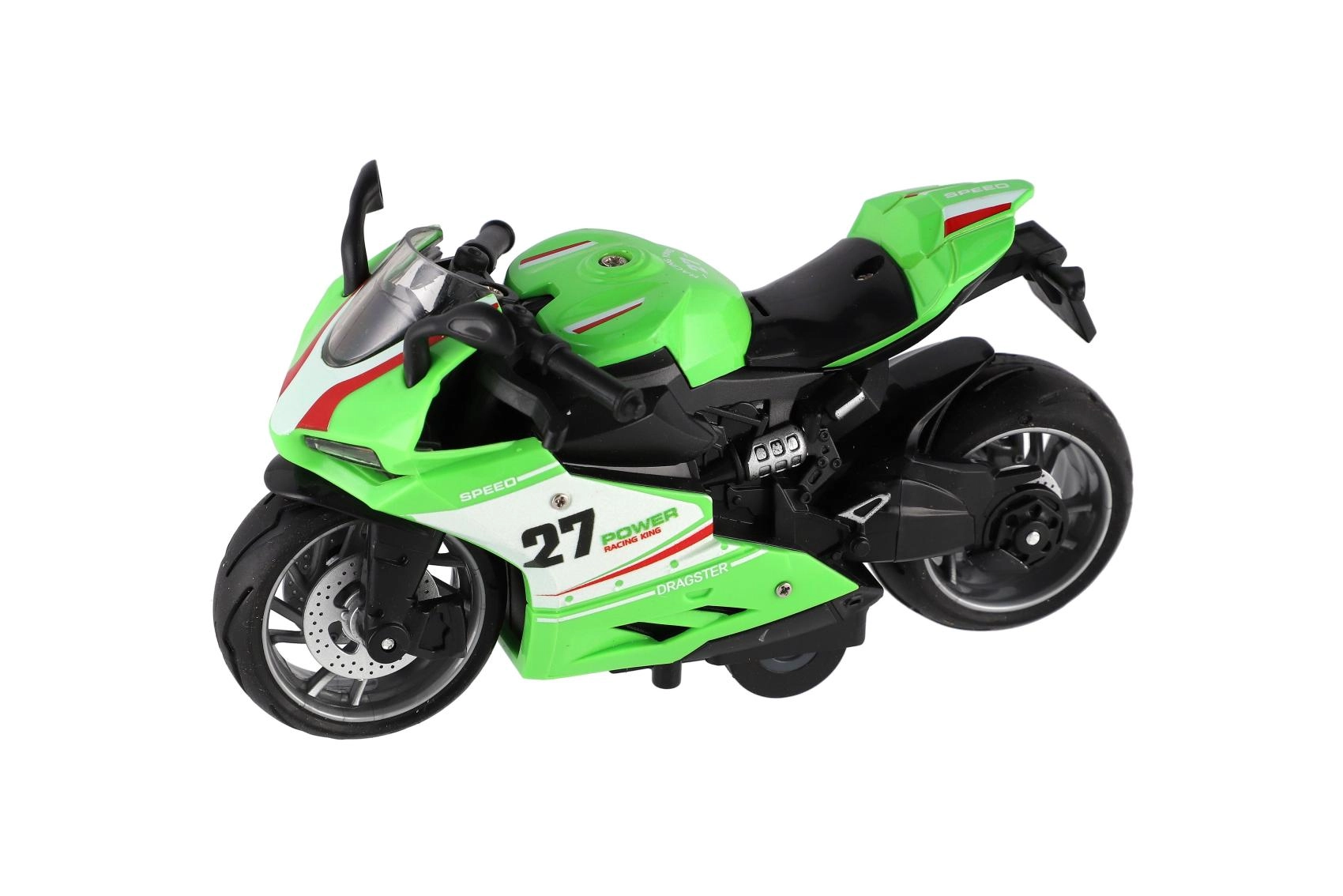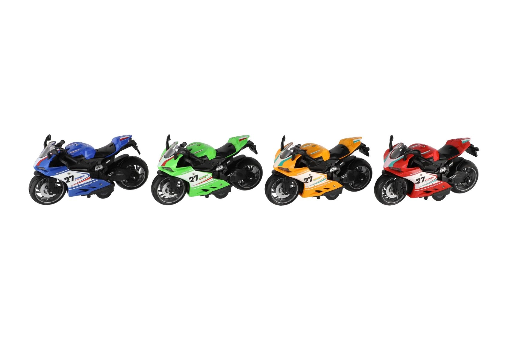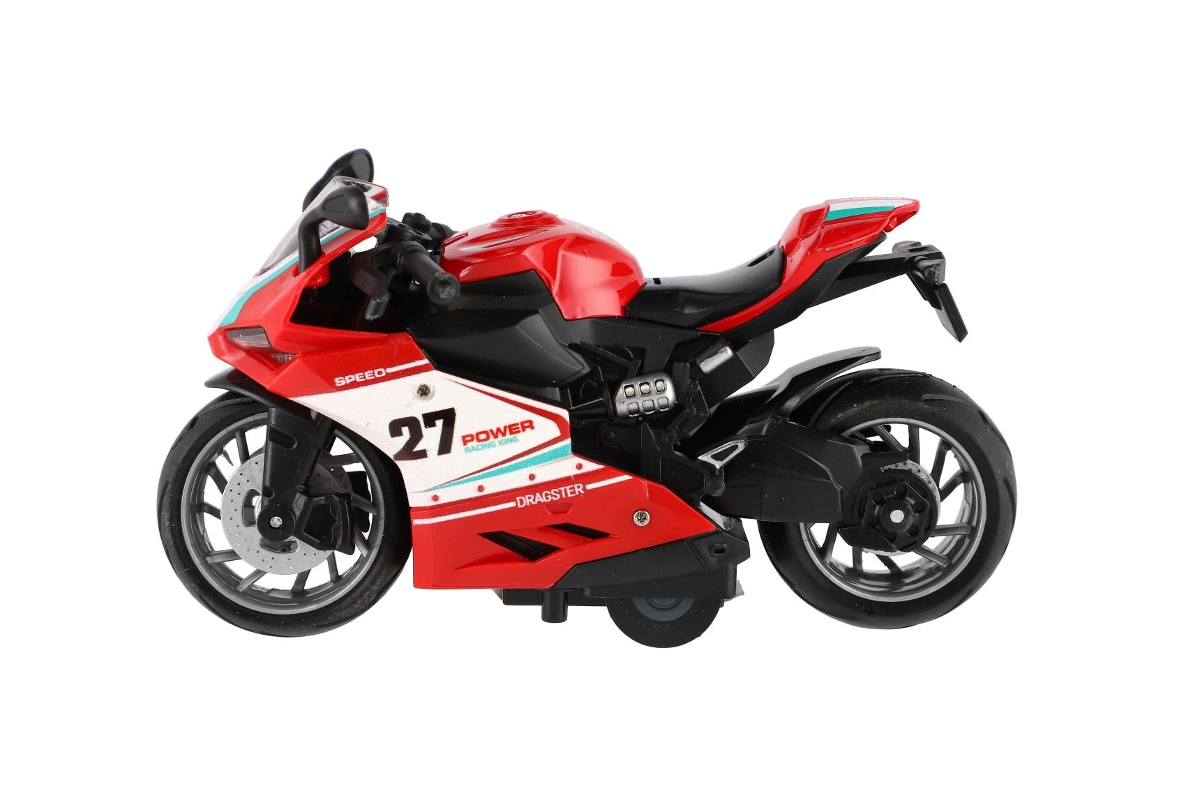 Този пластмасов пътен мотор комбинира динамичен дизайн с лесно управление. Достатъчно е да го дръпнете назад и да го пуснете – моторът бързо потегля и предлага на децата екшън забавление. Интегрираните светлина и звук добавят реализъм, така че всяко каране се усеща като истинско състезание.