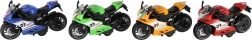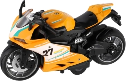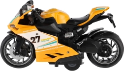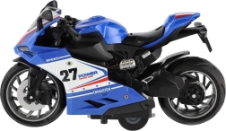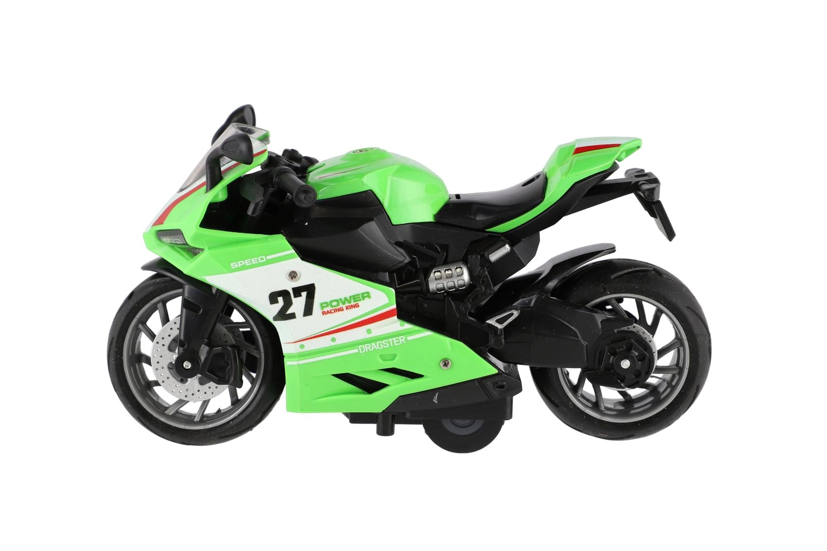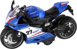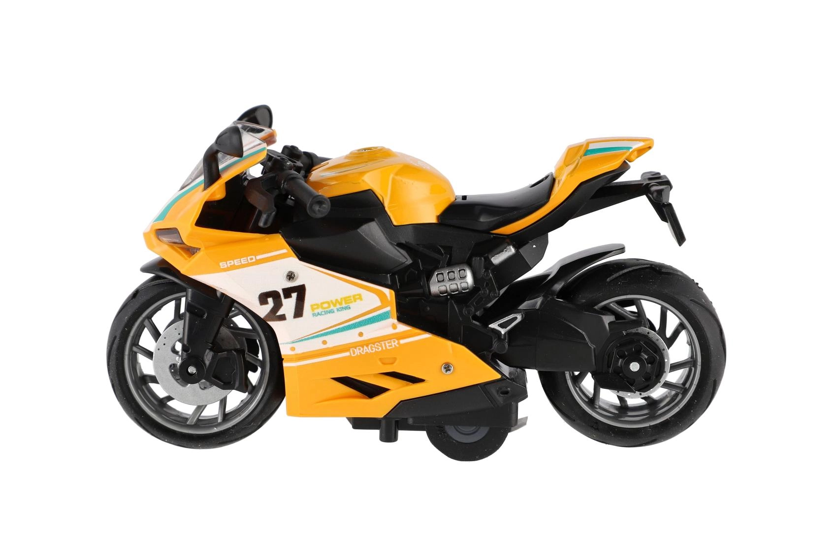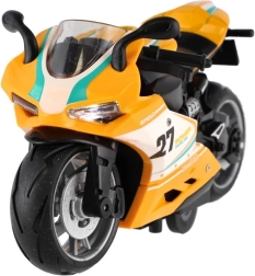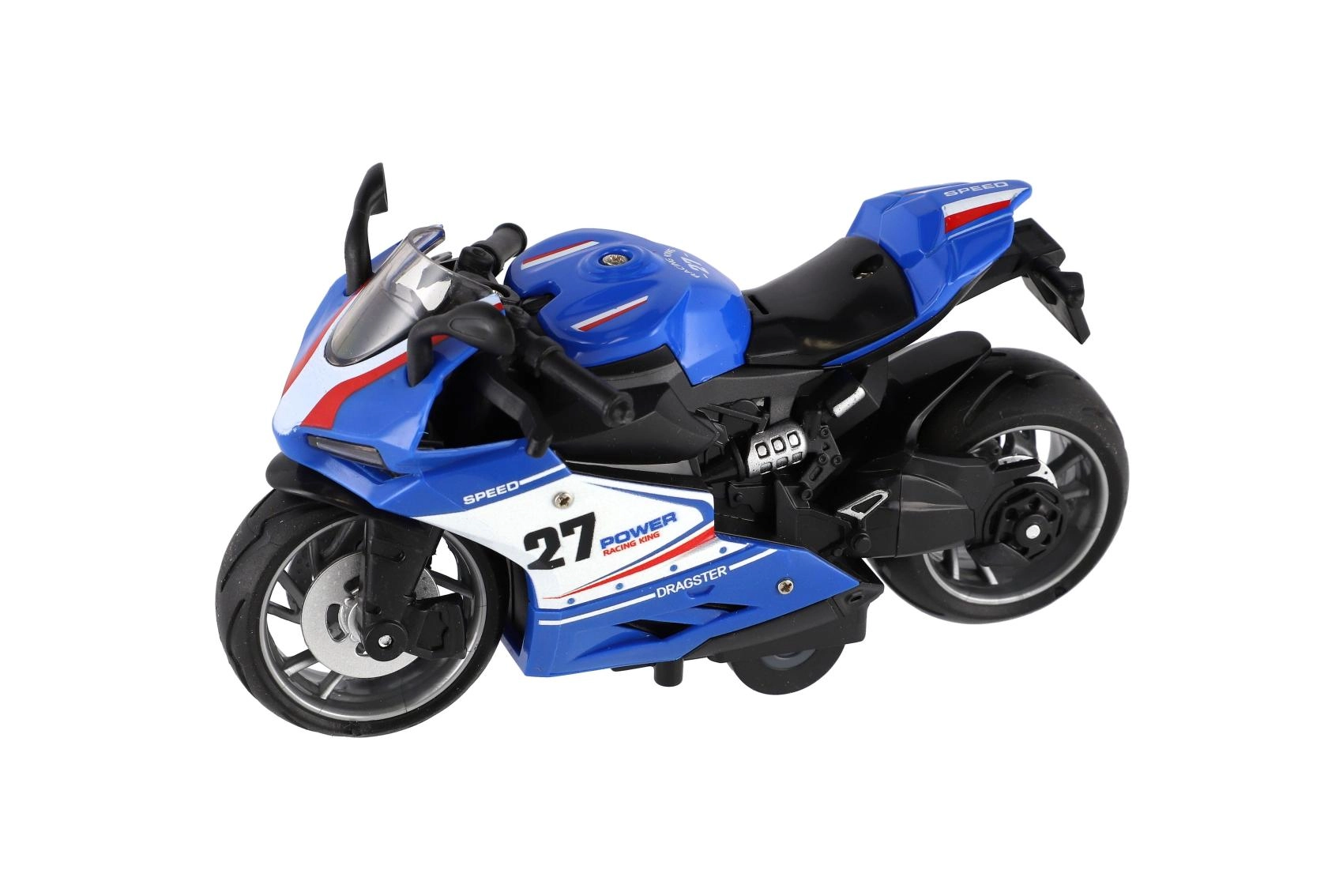 Този пластмасов пътен мотор комбинира динамичен дизайн с лесно управление. Достатъчно е да го дръпнете назад и да го пуснете – моторът бързо потегля и предлага на децата екшън забавление. Интегрираните светлина и звук добавят реализъм, така че всяко каране се усеща като истинско състезание.
