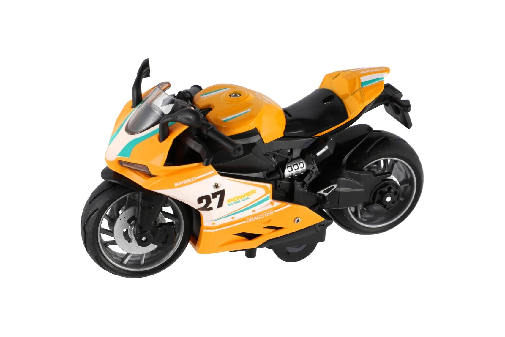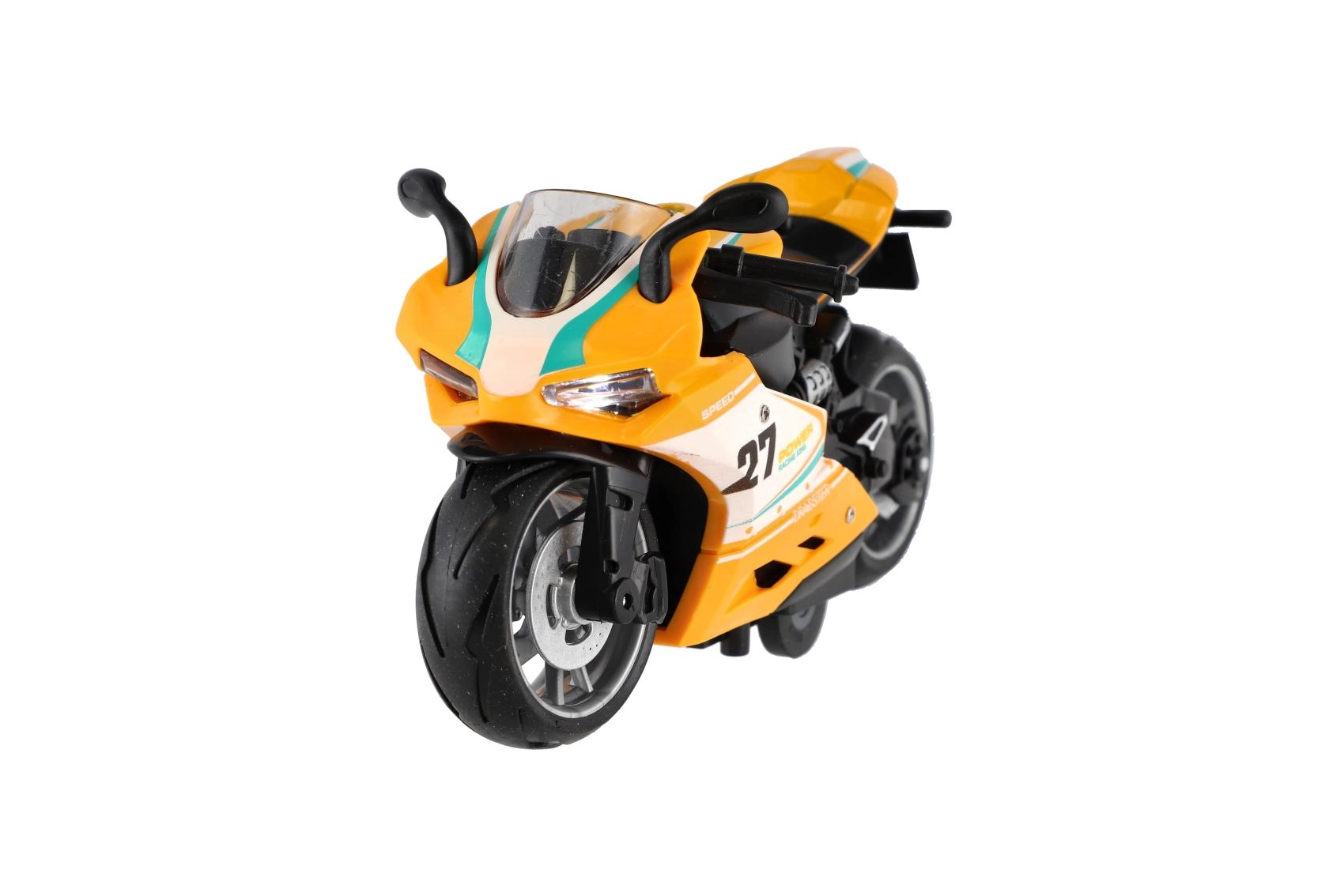 Дръпни назад, пусни и гледай как моторчето пъргаво потегля по пода. Перфектно за кратки състезания и екшън игри.