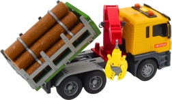 Реалистичен товарен камион с кран за превоз на дървесина в мащаб 1:14, който ще зарадва малките почитатели на строителните машини. Предлага функционален кран за товарене и разтоварване на трупи, светлинни и звукови ефекти (клаксон, заден ход, аларма) и издръжлива изработка от висококачествен пластмаса. Децата ще упражняват фината моторика, ще разбират принципите на машините и ще се забавляват с часове.
