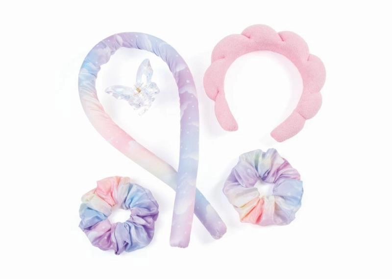 В комплекта има щипка тип пеперуда за бързо захващане и пухкава лента за глава, която държи косата далеч от лицето по време на почистване на грим или учене. Пастелните цветове ще зарадват малки и по-големи любителки на прическите.