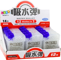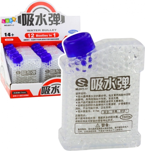 Прозрачният контейнер съдържа 1500 готови хидрогелови топчета с диаметър 6–7 мм, които са готови за незабавна употреба без накисване. Топчетата са безопасни, нетоксични и биоразградими, при попадение се разпадат и не оставят бъркотия. Подходящи за повечето пистолети за водни гелови топчета, идеални за забавление у дома и на открито.