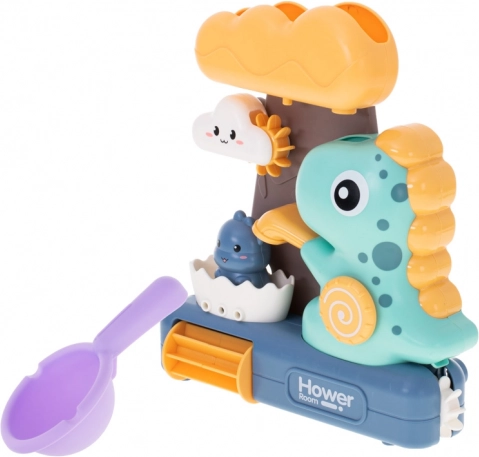 Главните герои на играчката са цветни динозаври и усмихнат облак, които превръщат всяка баня в чиста радост. Играчката стимулира детската креативност и въображение и развива логическото мислене. Детето може да наблюдава как водата, налята на едно място, изтича през друг отвор и задвижва всички части на играчката.