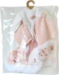 Дрешките за бебе-кукла с размер 40–42 см са част от 4-частов комплект, който включва три части облекло, декоративно одеялце и гнезденце. Ръчно изработено в Испания и предназначено за деца от 3 години.