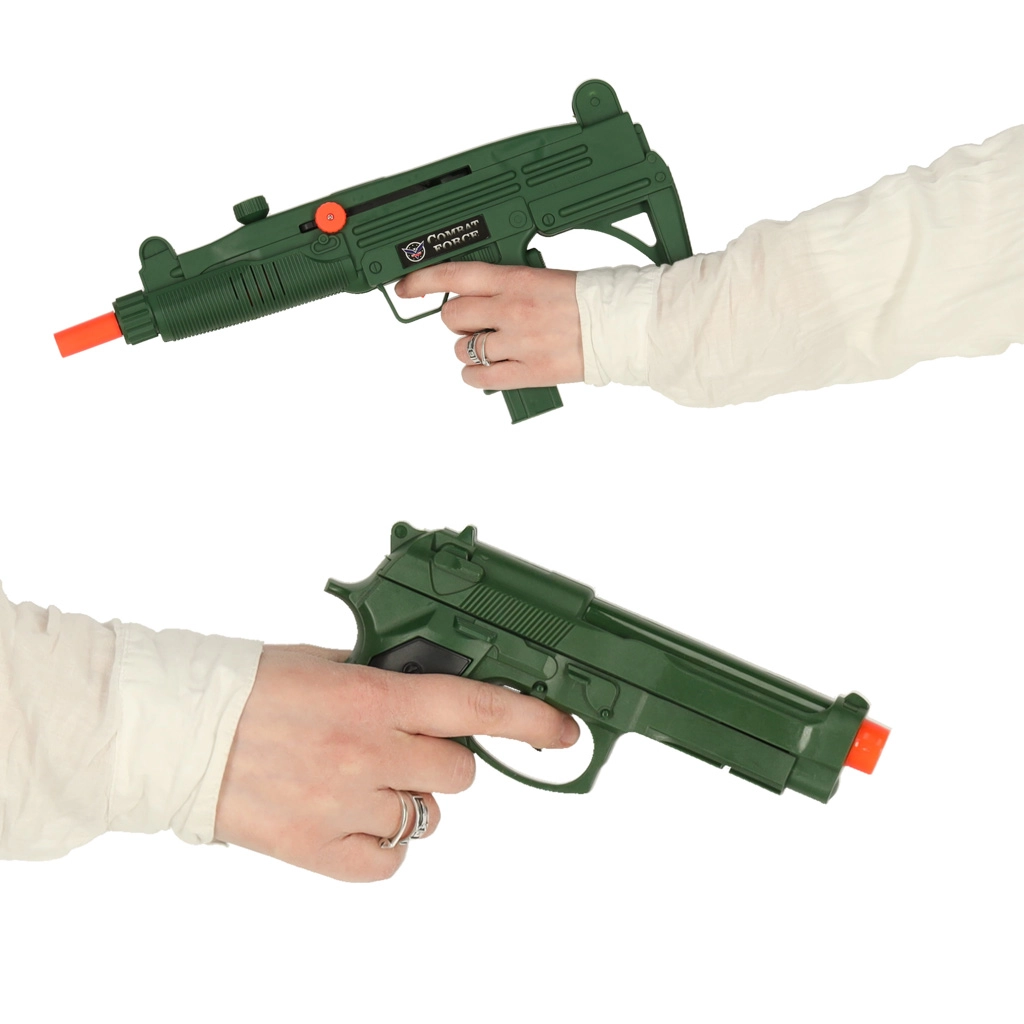 - Пистолет: На батерии, с ефекти, идеален за млади приключенци