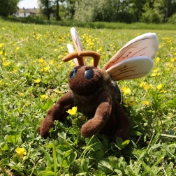 Нежни криле с жилки, райето коремче и големи очи придават на играчката жив израз, който децата обожават.
