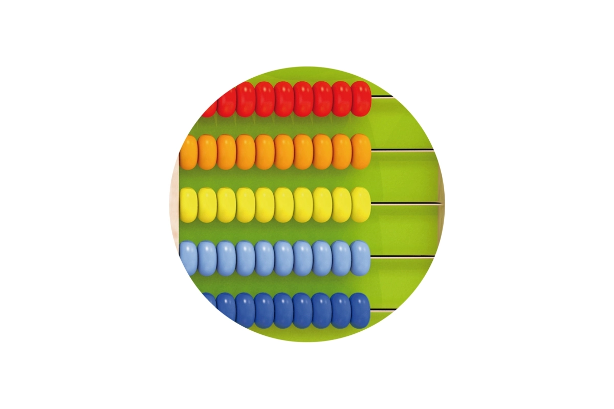 Пет реда мъниста в ярки цветове насърчават децата да откриват по естествен начин числата, събирането и изваждането по забавен начин.