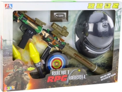 Военният комплект с базука RPG предлага вдъхновяващо изживяване за малките фенове на военните игри. Голямата и ефективна ракетна стрелба с оптичен мерник и три ракети гарантира безброй часове страхотно забавление. Децата могат да тренират своята точност, стреляйки по включената мишена, което помага за развиване на координацията и моторните умения.