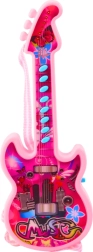 Електрическата детска китара е оборудвана с бутонни клавиши, имитиращи солмизация, което осигурява отличен въвод в основите на музиката по достъпен и привлекателен начин. Всеки бутон представя различен тон, което позволява на детето да експериментира със звуци и да опознава тяхната структура. Освен това китарата възпроизвежда весели мелодии, които насърчават интерактивно участие, развивайки слухова чувствителност, ритмично усещане и координация между ръка и ухо.