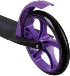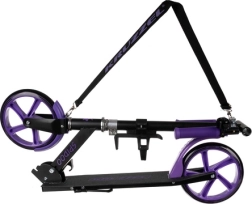 Тази черно‑лилава тротинетка е отличен избор за деца от 8 години и по‑големи ездачи, които търсят удобни и безопасни градски придвижвания. Големите 200 mm колела омекотяват неравностите и осигуряват стабилност, а антислип настилката и надеждната крачна спирачка дават контрол във всяка ситуация. Сгъваемият механизъм и регулируемата презрамка улесняват пренасянето и съхранението.