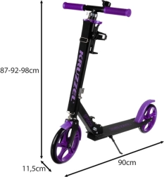 Лека градска тротинетка KRUZZEL с големи колела 200 mm за плавно каране по тротоари и неравности. Благодарение на сгъваемата конструкция, регулируемото кормило (87–92–98 cm) и краната спирачка осигурява безопасност, комфорт и лесно пренасяне с регулируема презрамка. Антислип дек, аксесоари в комплекта и лагерите ABEC‑7 гарантират увереност и тих, гладък ход.