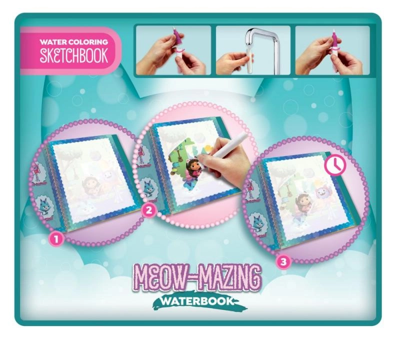 Открийте магията с книгата Gabby’s Dollhouse, която разкрива зашеметяващи рисунки при намокряне. Обогатете играта на децата с този магически хартия и воден маркер.