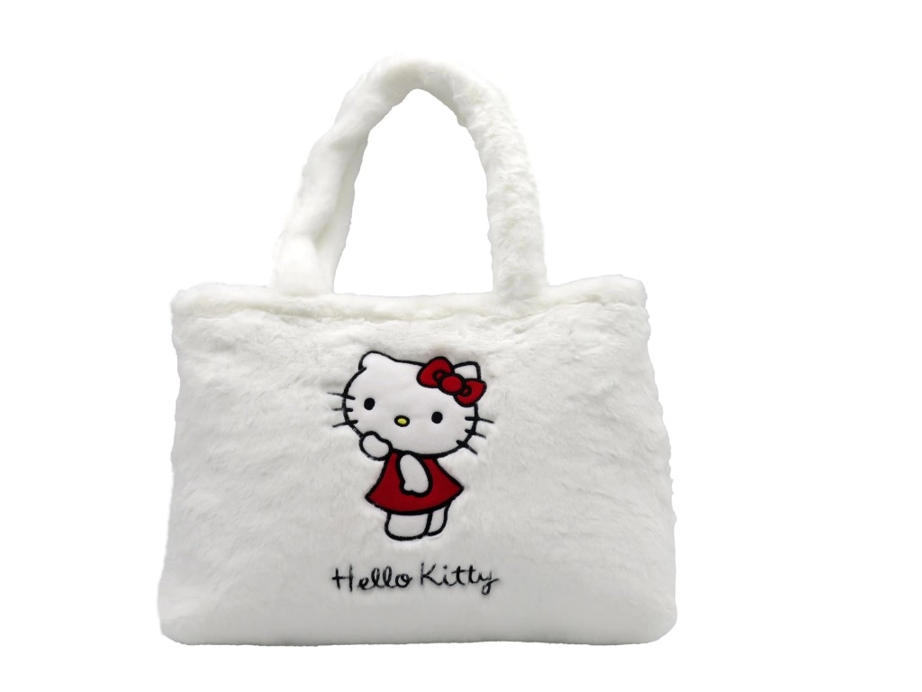 Голяма плюшена чанта Hello Kitty е изработена от качествени материали за мекота и издръжливост, идеална за пренасяне на книги, бутилки и хигиенни принадлежности.