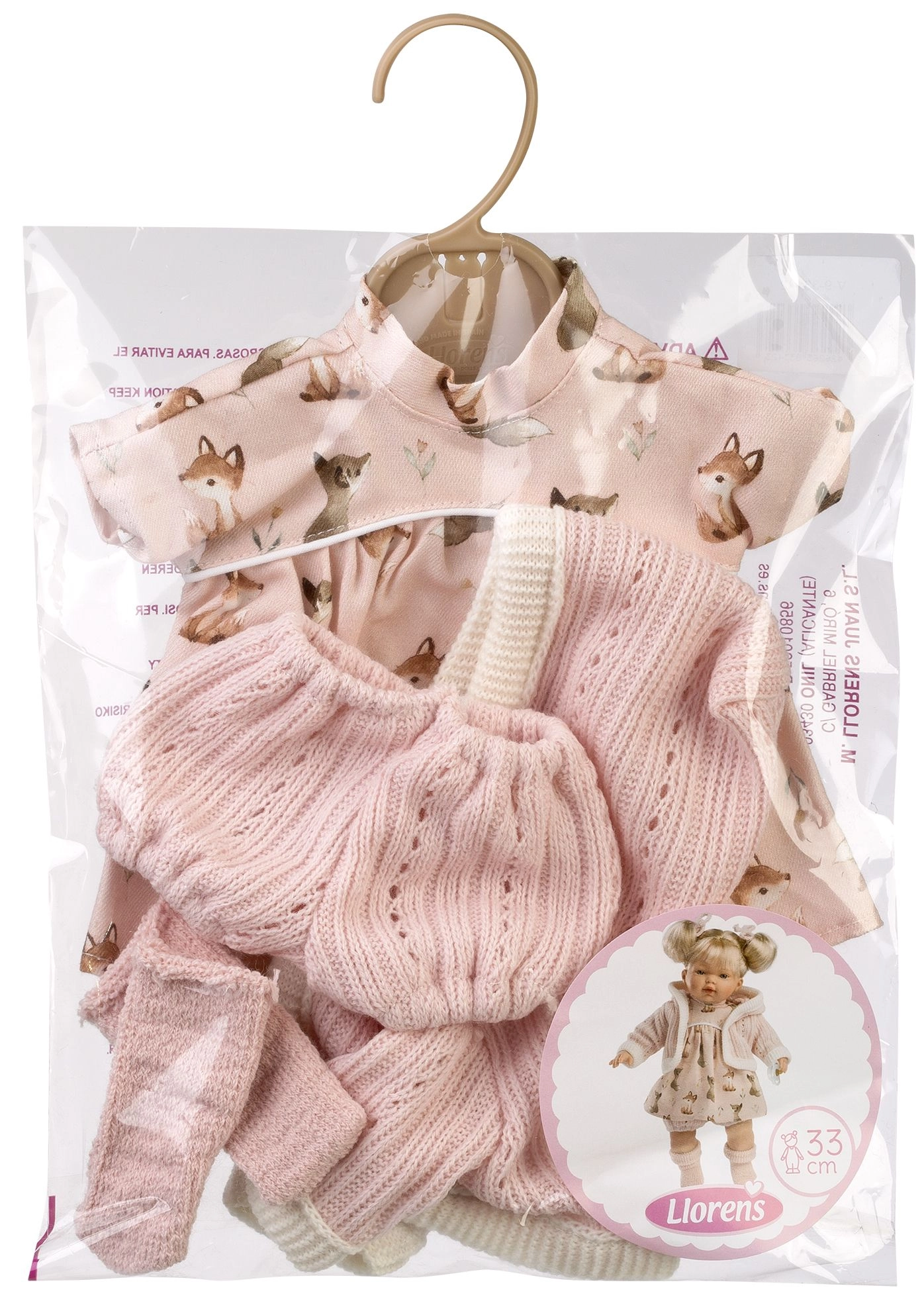 Представяме първокласен комплект дрешки за кукли от марката Llorens, създаден за най-малките елегантни дами. Този сет съдържа четири детайлно изработени части облекло, които перфектно пасват на кукли с размер 33 см.