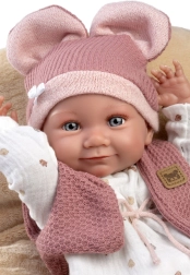 Тази реалистична кукла Llorens, ръчно изработена в Испания, предлага детайлна изработка на всеки аспект от бебешкото телце, включително сладки гънки и анатомични детайли. Бебето е напълно подвижно и може да седи благодарение на ставните съединения на крайниците. Виниловото тяло позволява куклата да се къпе удобно, с внимание към миглите. Повишената грижа осигурява по-дълъг живот.