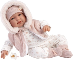 Куклата Llorens New Born предлага автентично изживяване благодарение на мекото текстилно тяло, което е приятно на допир. Бебето може да се позиционира и да седи, което позволява различни игри и сцени. Артикулиращите ръце и крака повишават интерактивността.