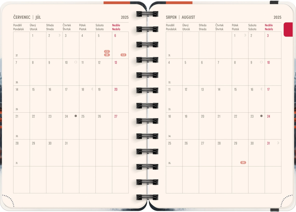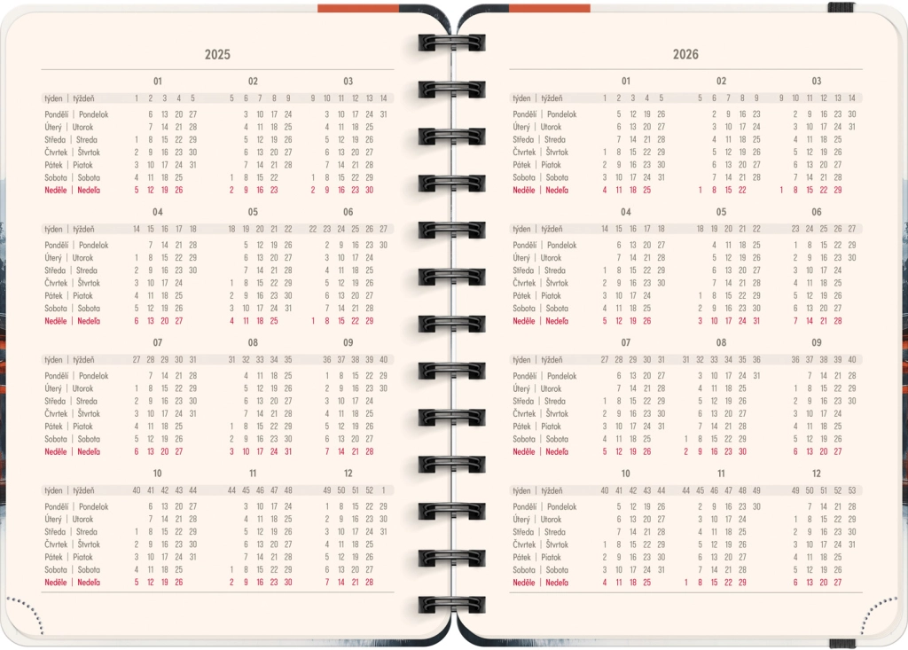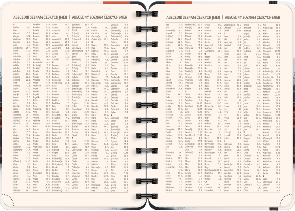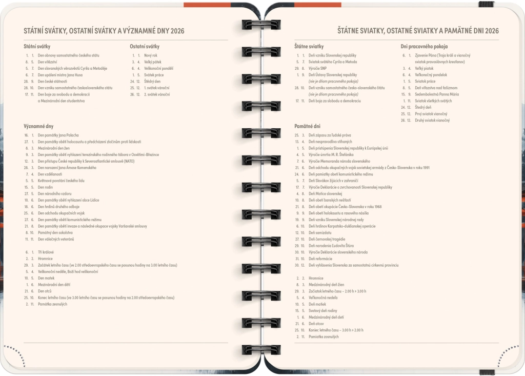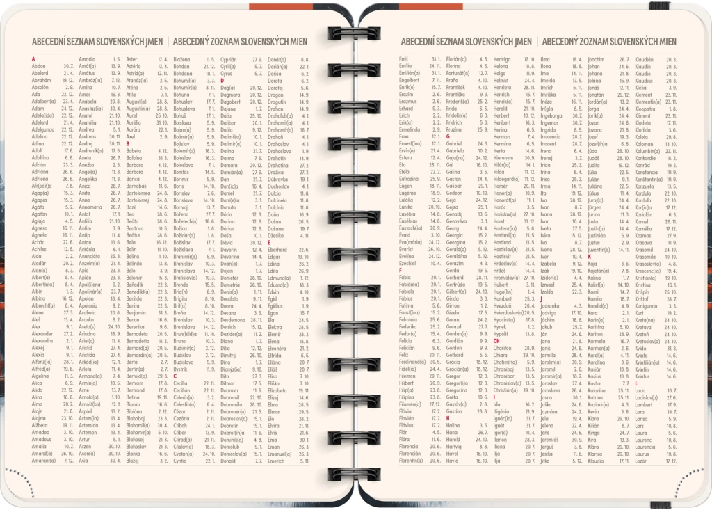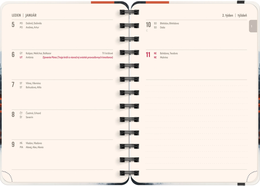 - Чешко-словашко седмично линейно календарче с имена и празници.