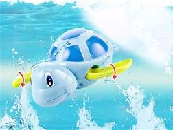 Нашата костенурка за баня е проектирана да носи много забавление по време на къпане. Децата веднага ще харесат красивите ѝ цветове и приятелския вид. Достатъчно е просто да я навием и костенурката сама ще се задвижи, като носи радост и смях по време на банята.
