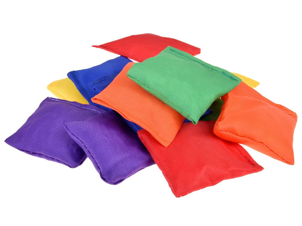 Торбичките са напълнени и подходящи за упражнения за прецизност и развитие на фината моторика. Различните цветове позволяват лесно точкуване и следене на напредъка.