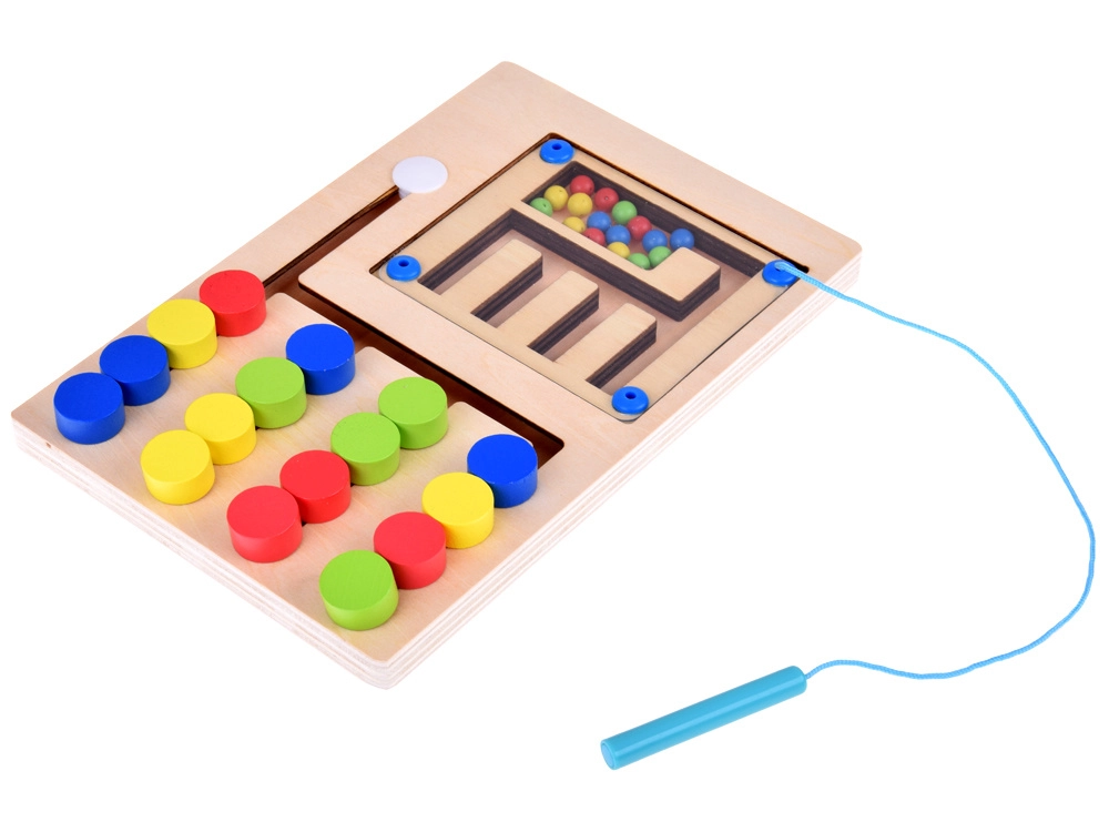 Лабиринтът с магнитна пръчица позволява на децата да преместват топчетата през пътечките, което повишава логическото мислене и носи забавление.